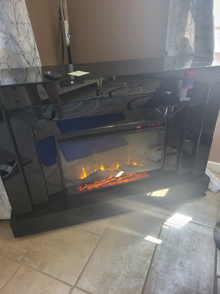 Selling an electric fireplace with a sleek black glass finish! It's in great shape and ready to add some warmth and ambiance to your space.Purchased last year at Leons