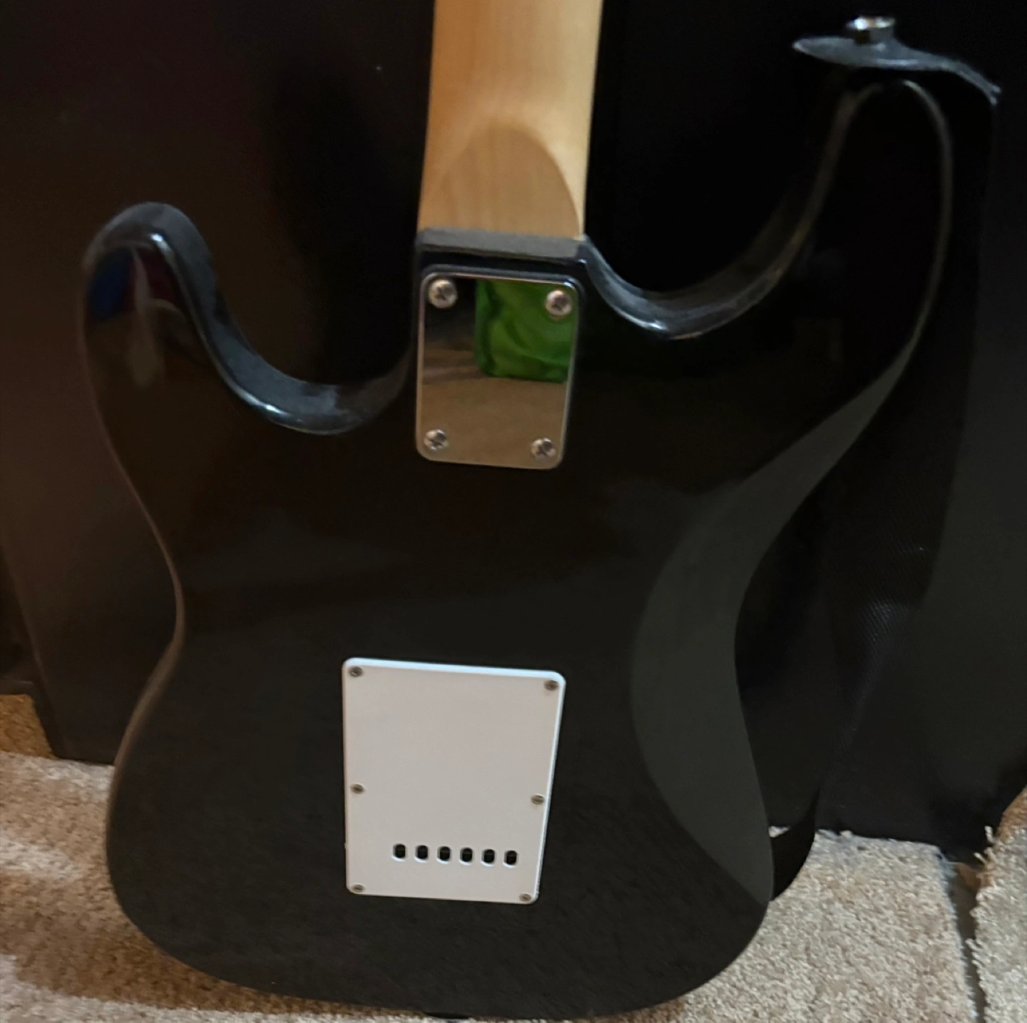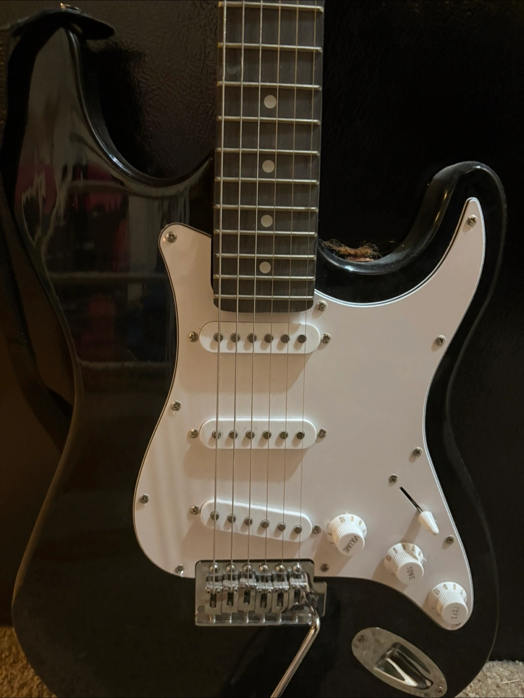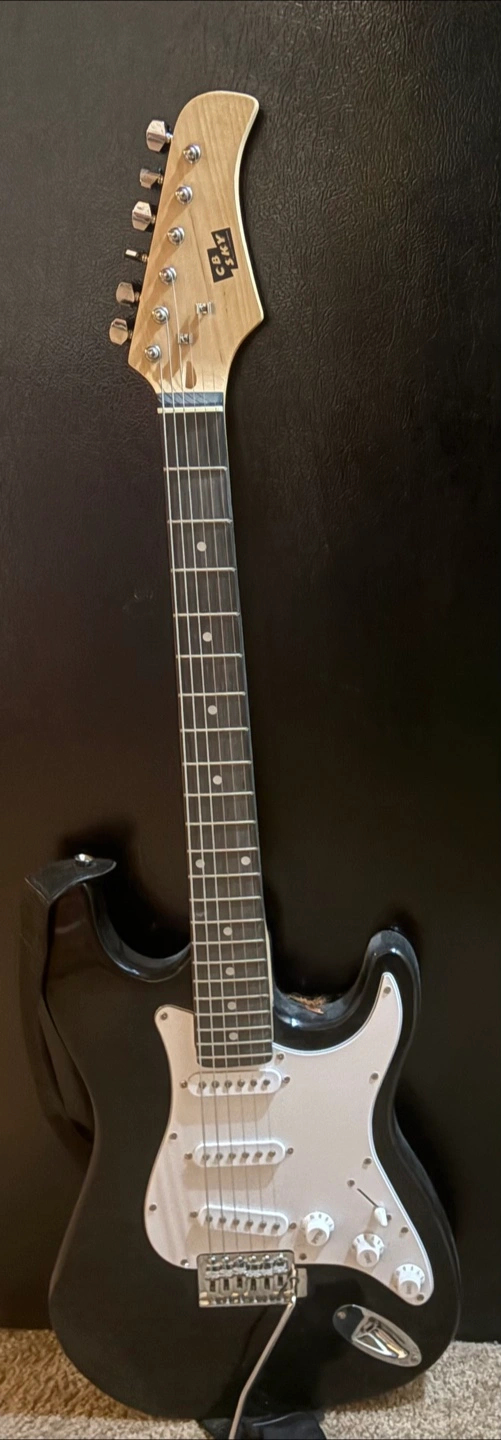 17electric guitar in black. It's in used condition with some signs of wear, but still plays well. Great for someone looking to learn or as a practice guitar!