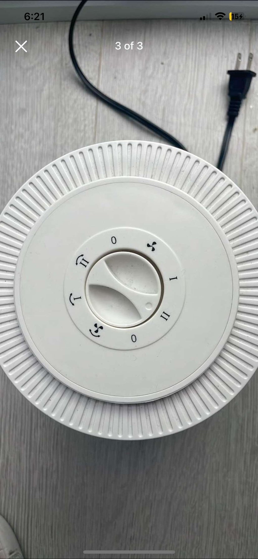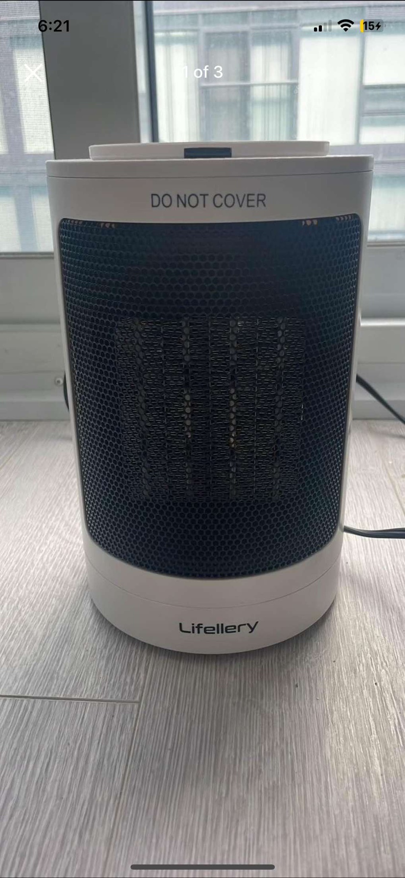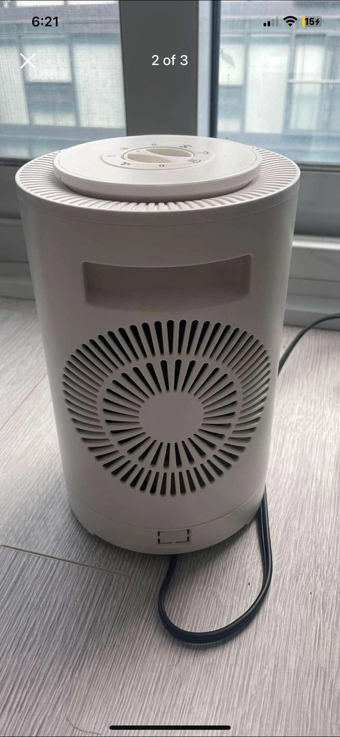 White mini heater with heat settings and a fan setting. Selling as moving country