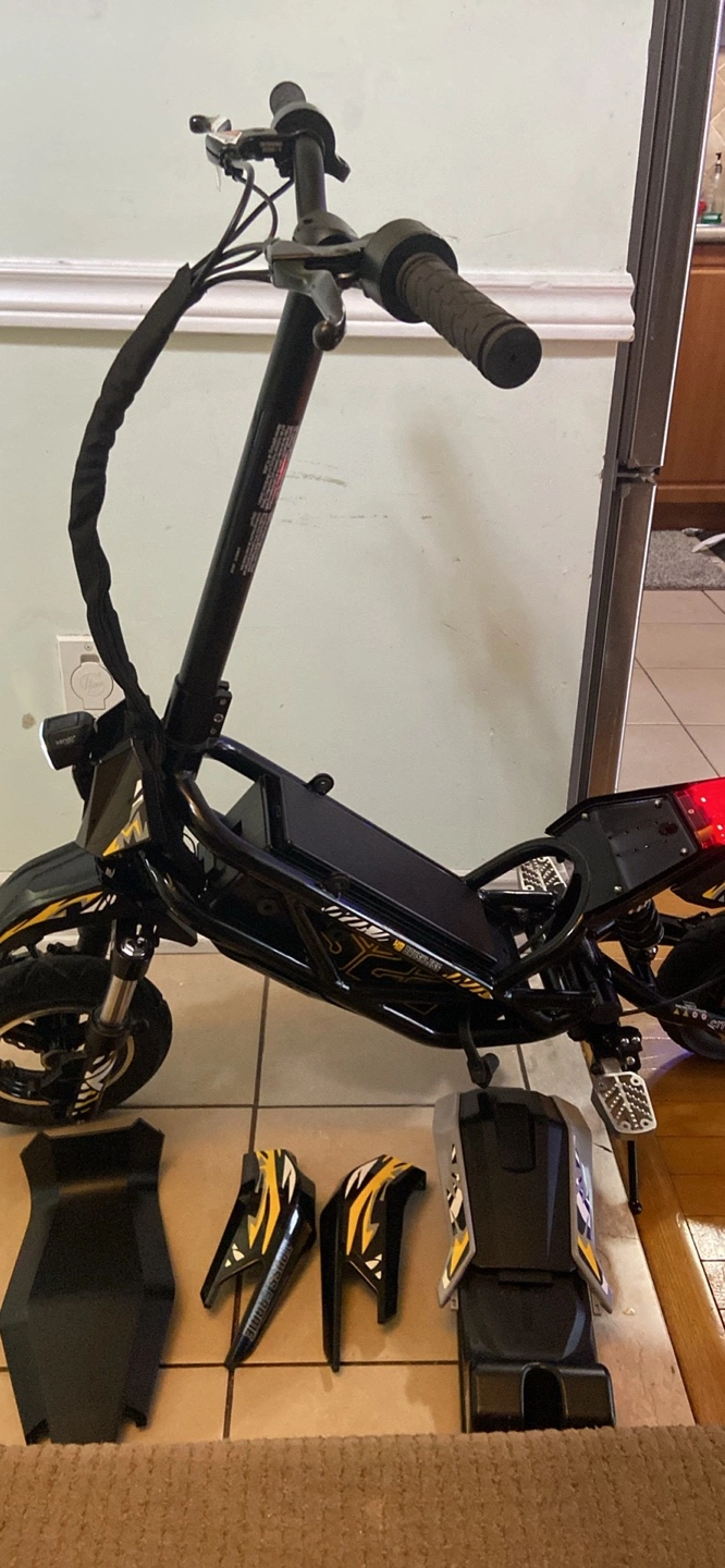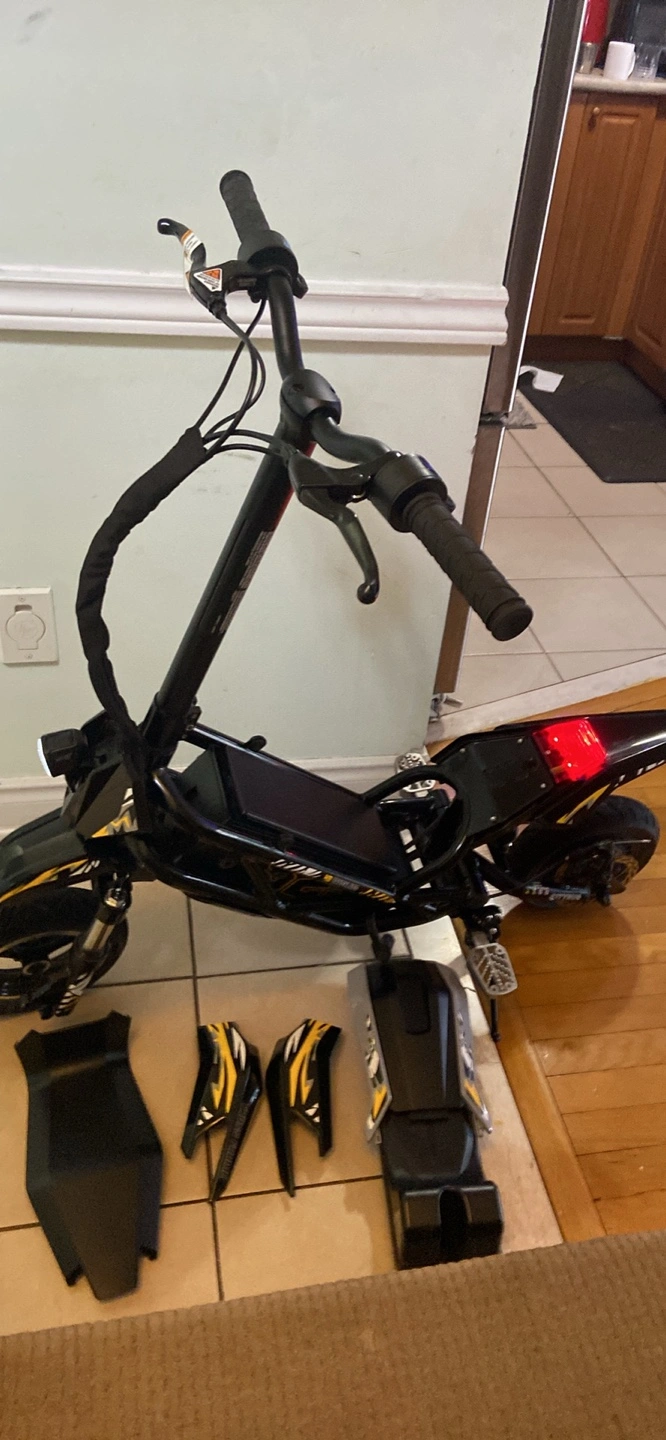 Electric scooter 32-40kmh full charge Not full charge= 25 Very good acceleration Suspension is very good Pick up fast if dmed woodside square mall Serious buyers only Will be cleaned before given Test tries allowed DM ONLY IF SERIOUS TRADES ACCEPTED 500$