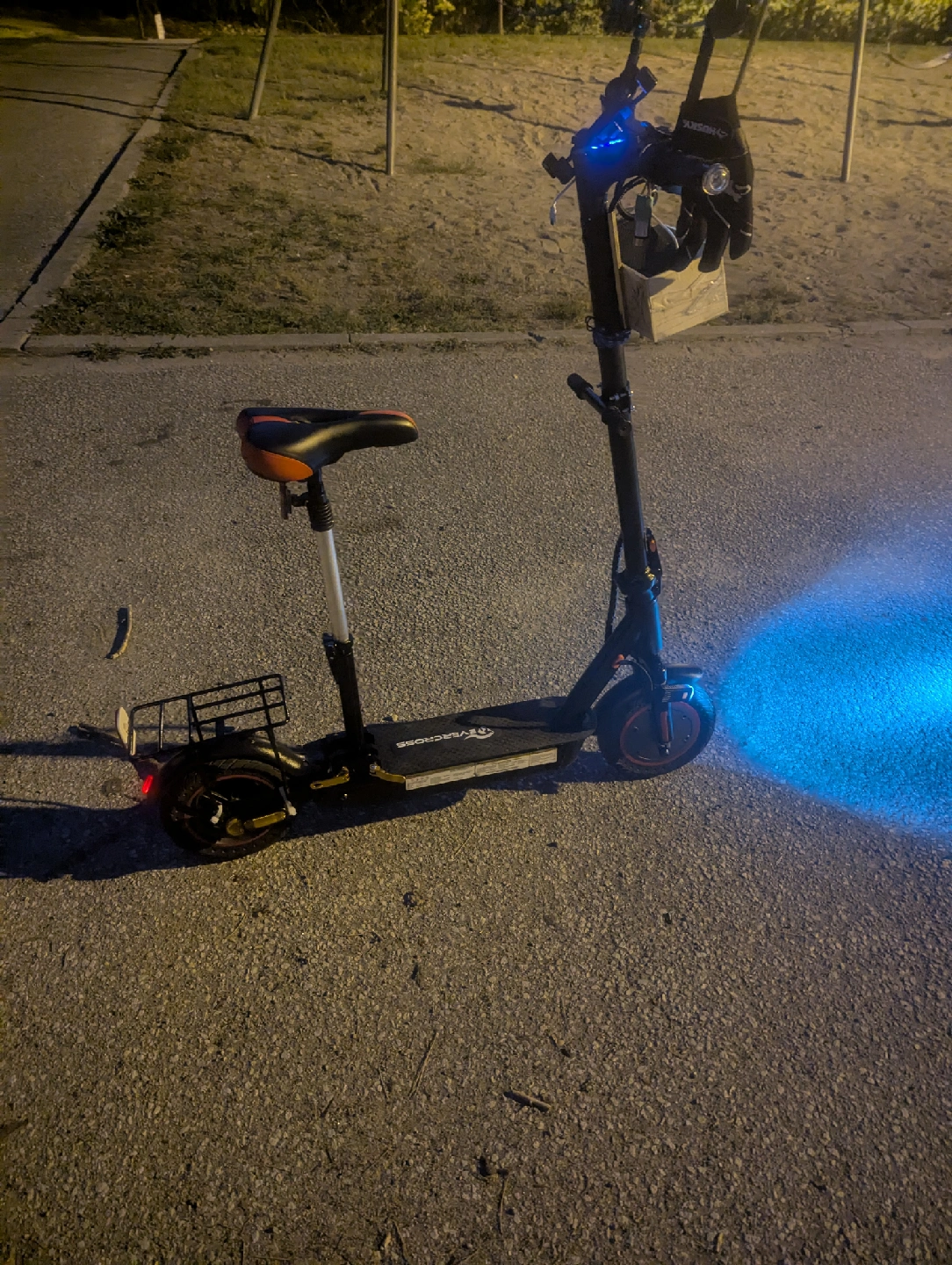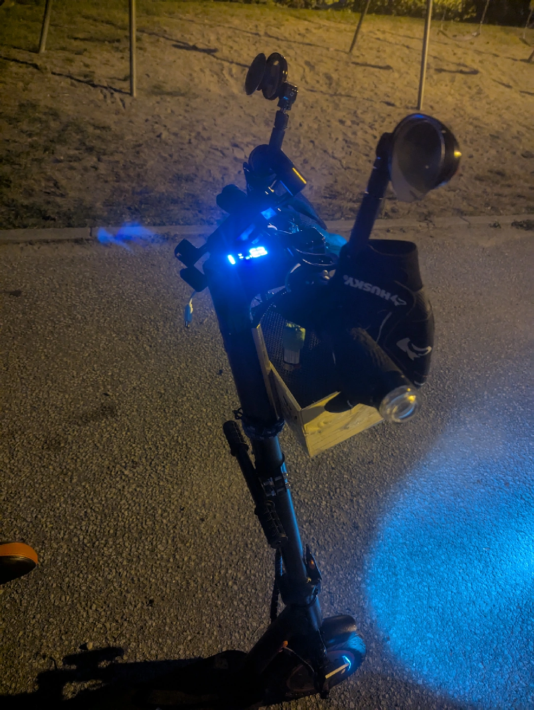 Selling an electric scooter with some Husky accessories attached. It looks like it can reach speeds of 30 km/h. Great for getting around town! long lasting battery 450