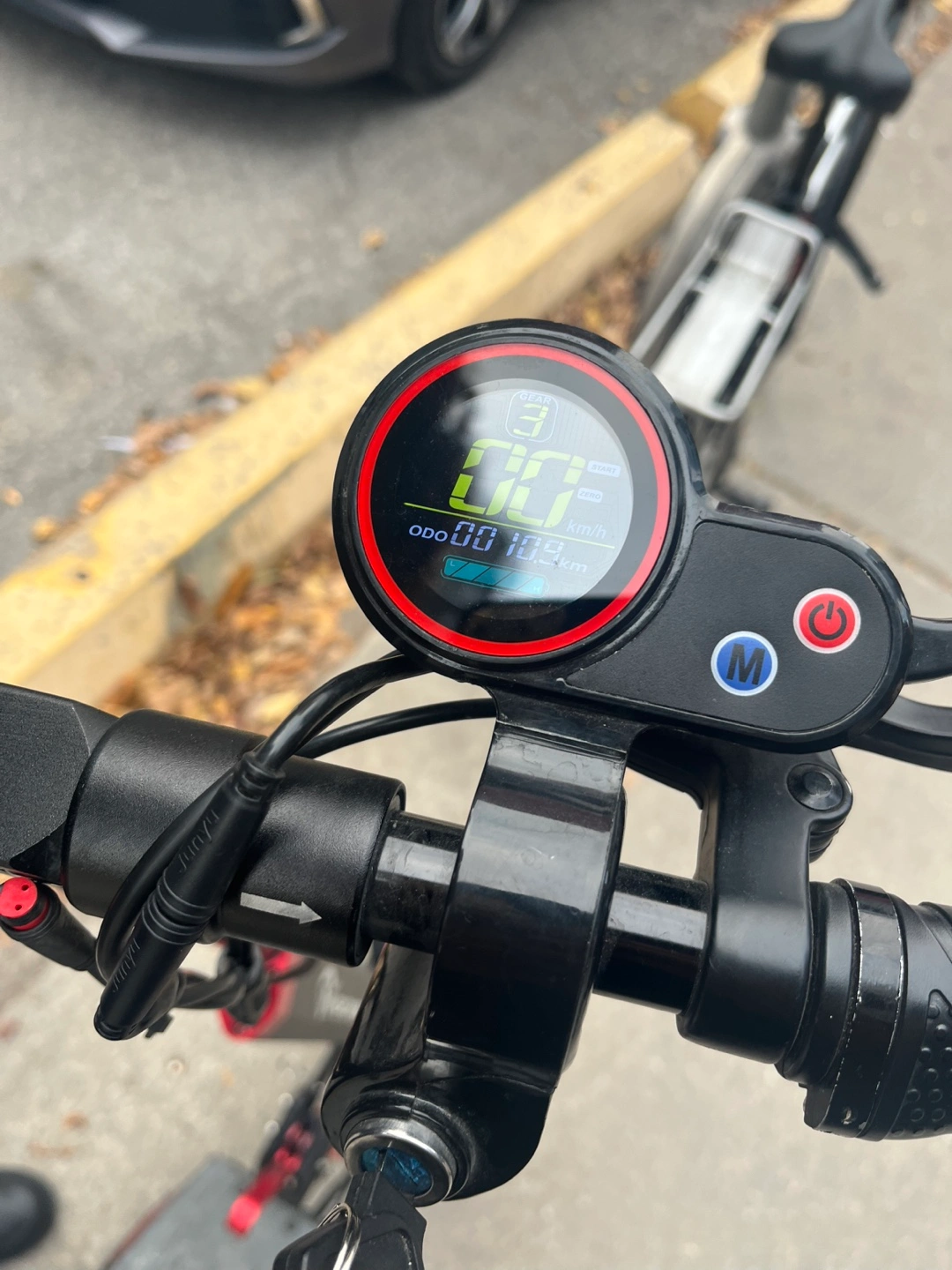 It has 3 gears top speed is 45kmh Comes with key and charger only 10.4km droven the seat comes off and i have it currently off