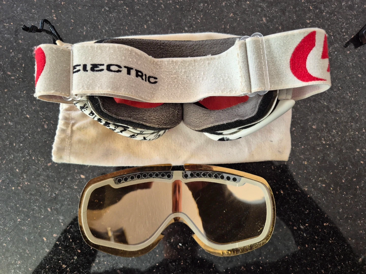 85Selling a pair of Electric snowboard goggles. They come with an extra lens for different light conditions. Ride in low light / foggy conditions or sunny blue bird days. Great for skiing or snowboarding!
