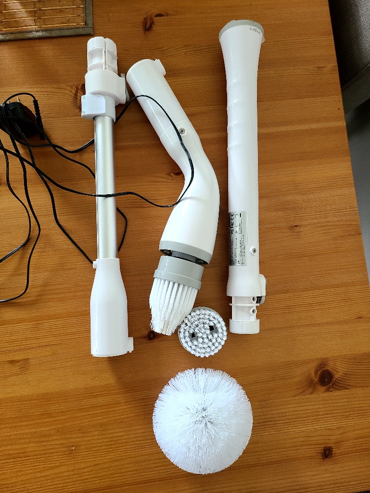 10Selling an electric spin scrubber with multiple brush heads. It comes with different attachments to help you clean various surfaces around the house. Includes the charger.