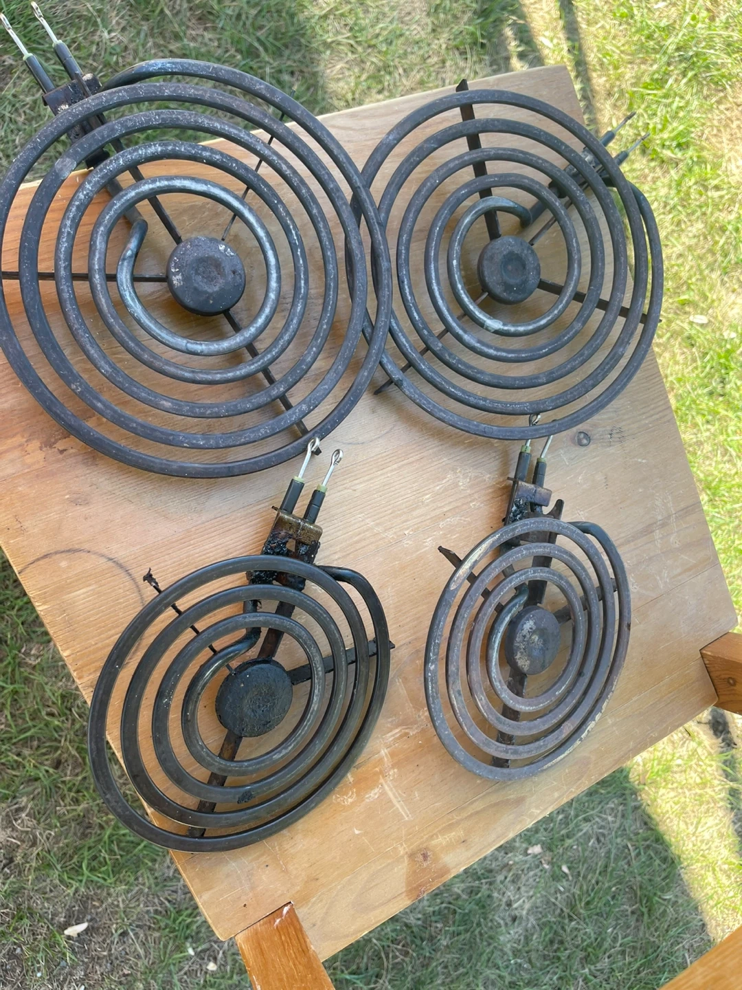 Selling a set of four electric stove burner coils. They show signs of use but are still functional. Perfect if you need replacements!