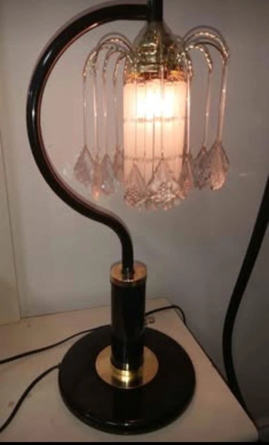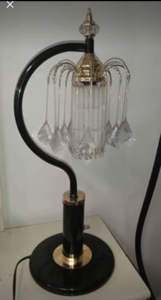 10Add a touch of elegance to your space with this beautiful accent lamp! The lamp features a black and gold finish with crystal-like pendants, perfect for adding a sophisticated touch to any room
