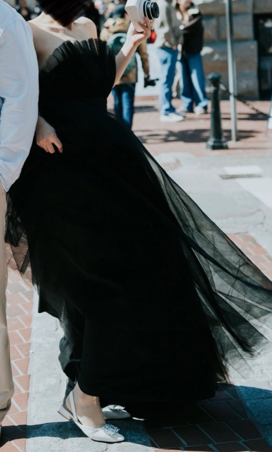 Gorgeous black tulle gown. Off-the-shoulder neckline. Flowy, full skirt. Only used for the photoshoot once. It's very nice and lace layers. Perfect for evening party or photoshoot. Lace back to adjust. Size US 8.