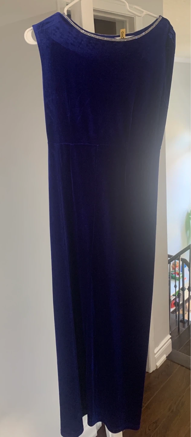 127Here's a beautiful blue velvet dress! It has a lovely design around the neckline. Perfect for a special occasion or a night out