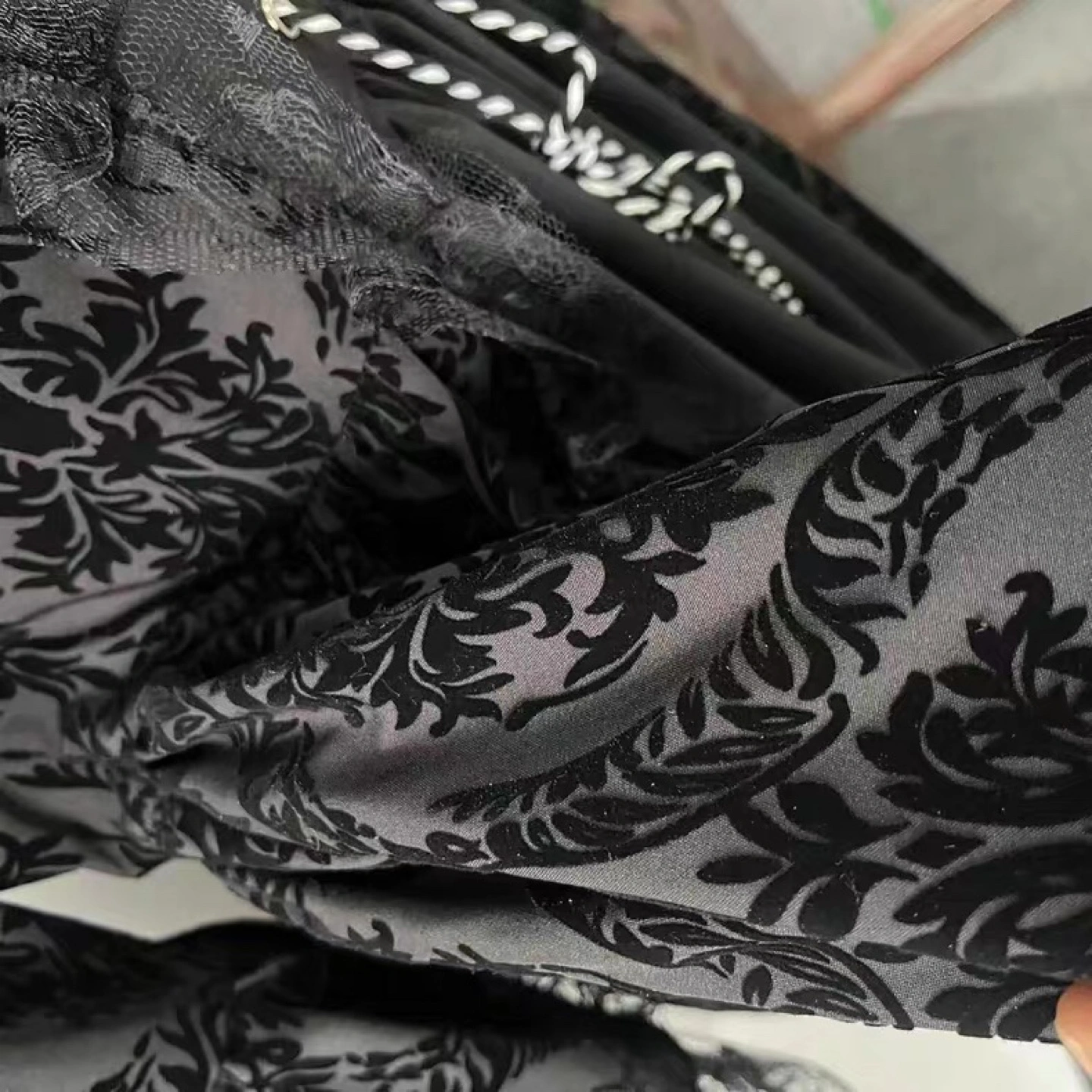 15Beautiful long gown. Features gold satin and black lace. Long sleeves, fitted bodice, and full skirt. Perfect for a costume party or historical reenactment.