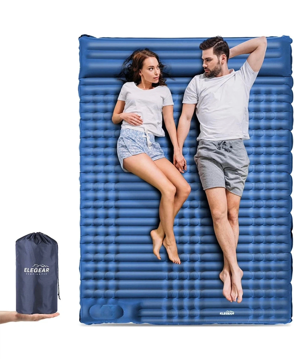 95Looking to sell my Elegear camping sleeping pad! It's in great shape and ready for your next outdoor adventure. It measures 79 inches by 55 inches and is 4 inches thick. It features a built-in foot pump for easy inflation and a drawstring design with a unique air support unit. It's designed for extreme comfort and deep sleep in any position!