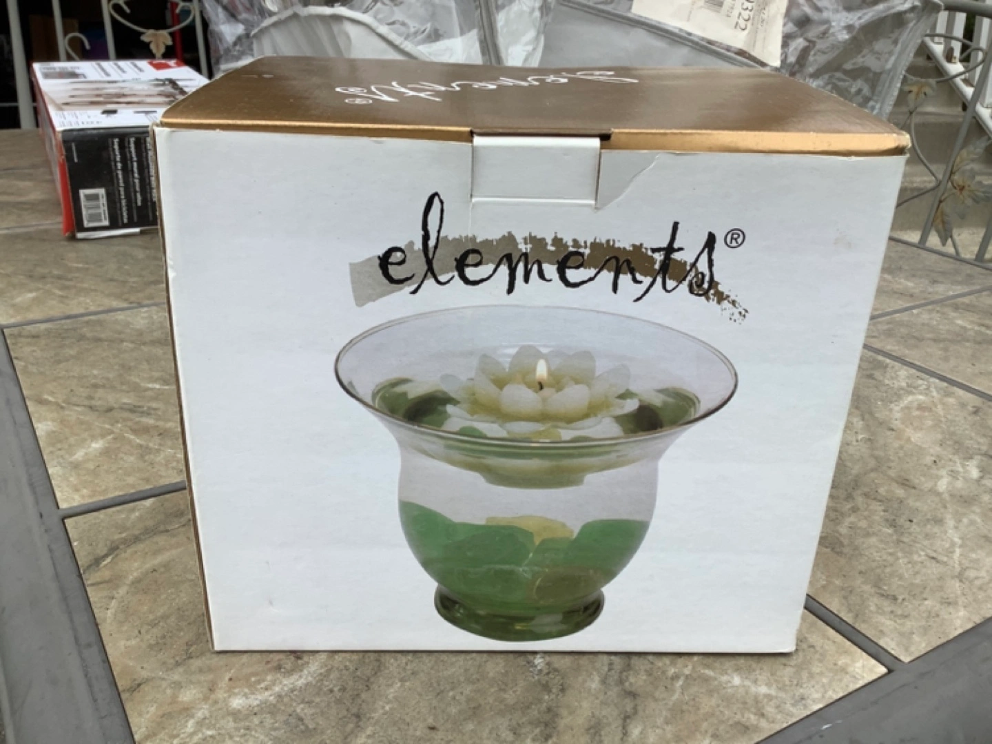 New in box. Glass vase with floating white candle. Perfect for a relaxing atmosphere.