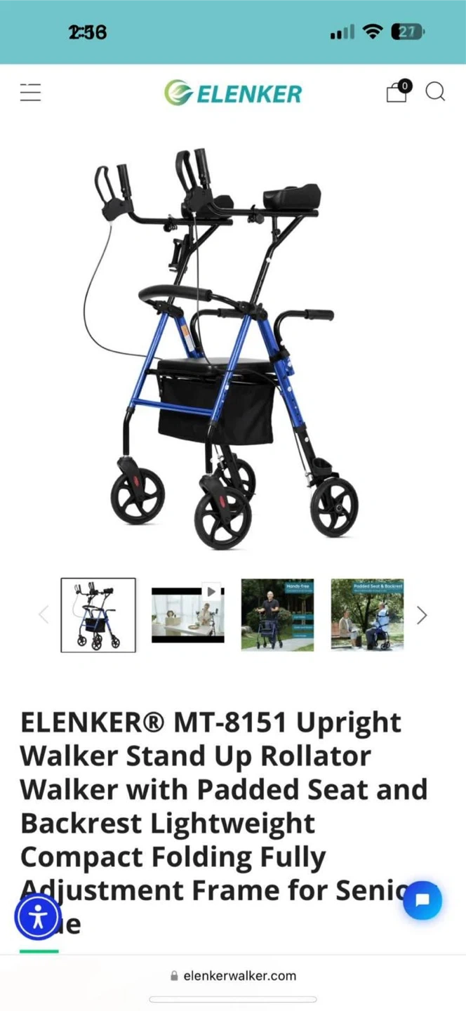72Selling a brand new ELENKER MT-8151 Upright Walker Stand Up Rollator still in its original box! This walker features a padded seat, lightweight and compact folding design, and a fully adjustable frame for seniors. It's perfect for anyone needing a little extra support and stability. The box is included!
