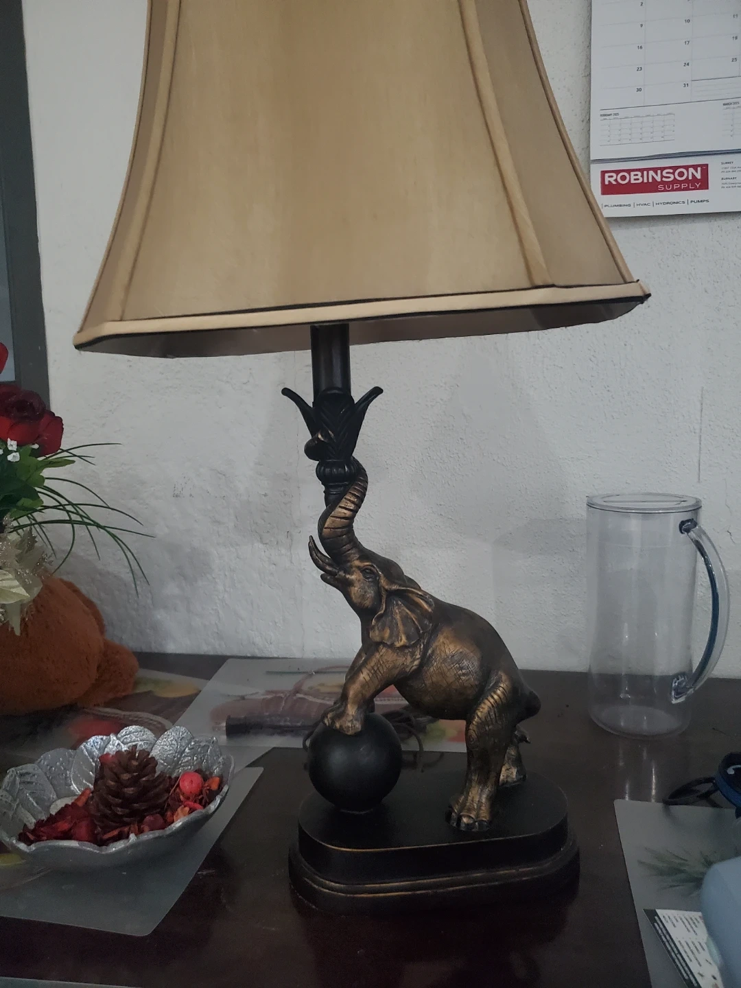 10Selling this unique elephant table lamp! It's a beautiful piece that adds a touch of elegance to any room. The lamp features a detailed elephant sculpture with a classic lampshade. It's in great condition and ready to brighten up your space