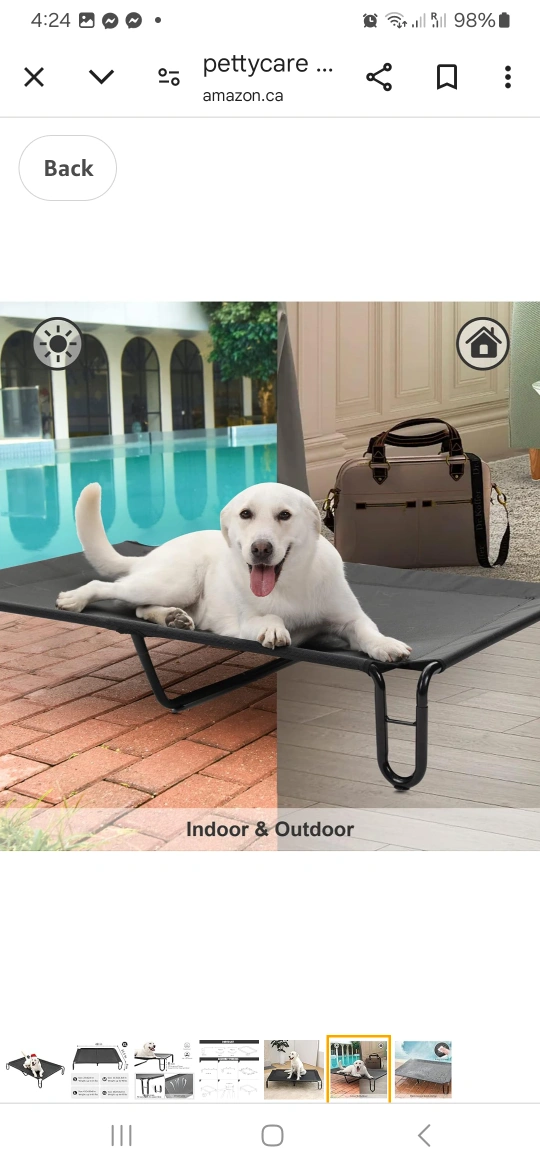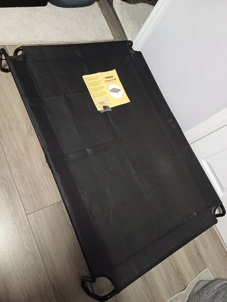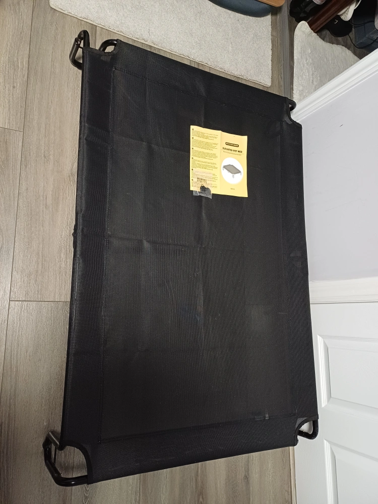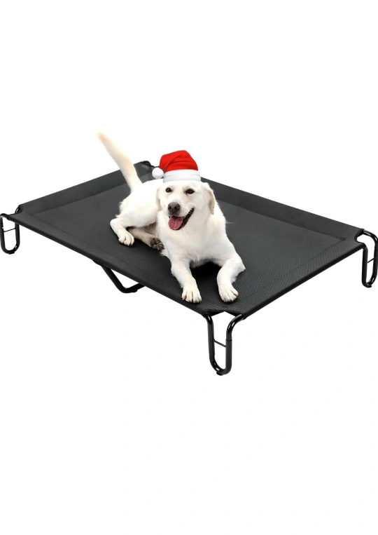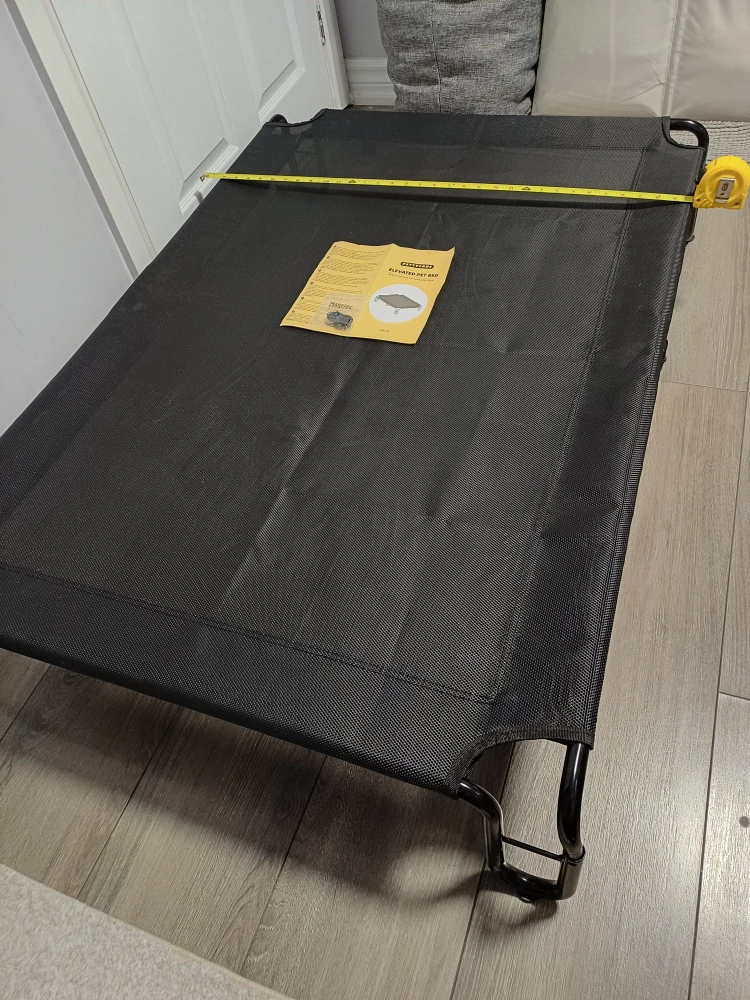Brand New... Never used.... Pettycare...Black elevated pet bed Extra large size. Water proof raised dog bed, cooling elevated bed with teslin mesh..Durable..Non-slip... Measuring 48 inches lonh, 33.5 inches wide and 8 inches in height. Can carry upto 85lbs. Great for dogs who prefer to sleep off the ground. Durable, easy to clean. Easy to assemble