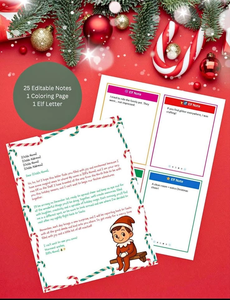 60Welcome back your Elf with this customizable letter! I can customize your child’s name and your elf’s name, along with 25 days of personal notes for your elf to leave your child/children! Also included is a fun colouring page!
