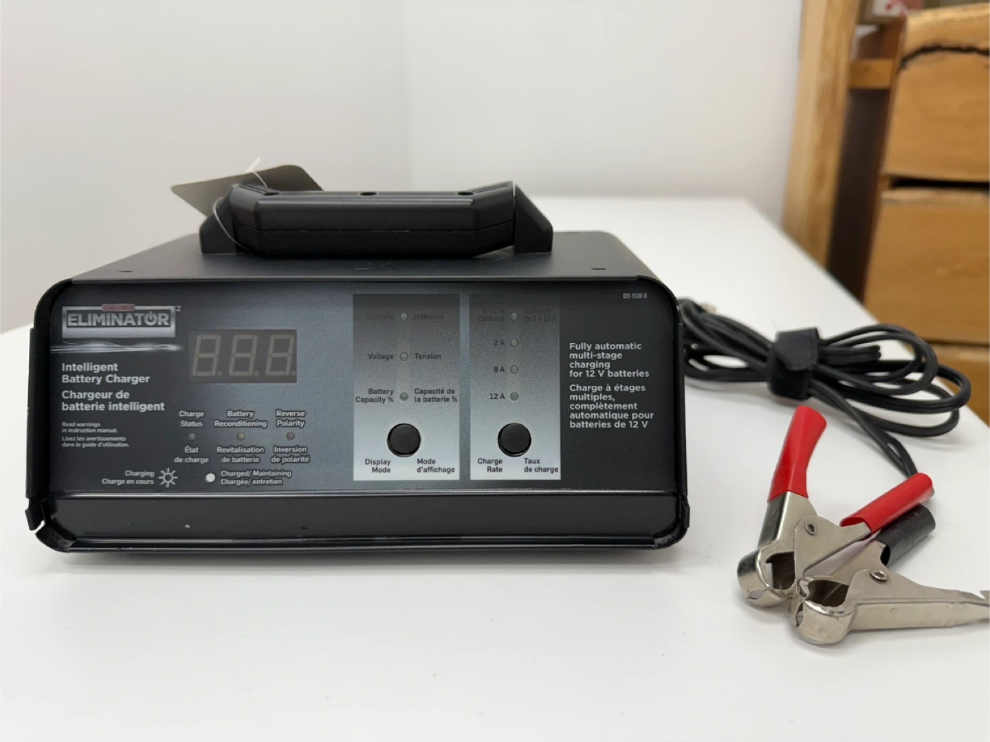 75Selling an Eliminator Intelligent Battery Charger. It's in great shape and ready to go! Model: 011-1518-6 Input: 120 V AC 60 Hz, 3 A Output: Automatic 12A max continuous manual 2/8/12 A 12VDC Manufacturing date: 2015 January 01