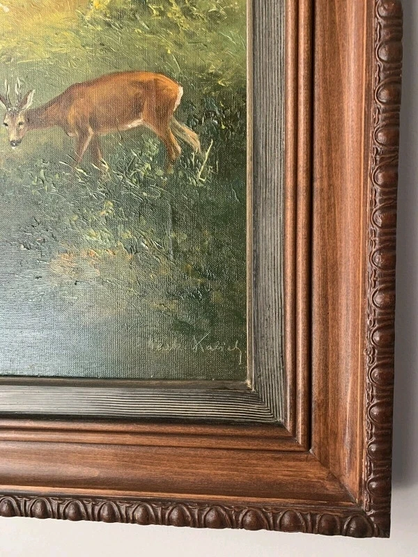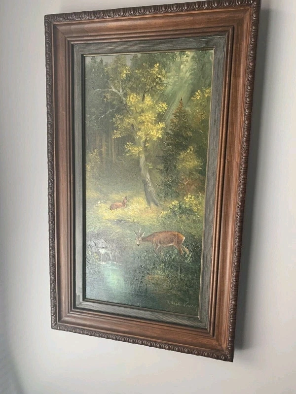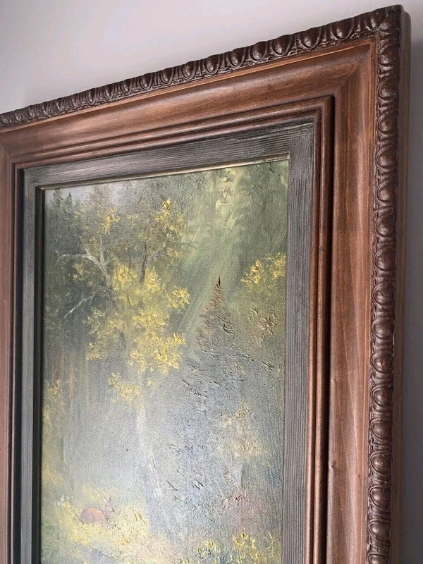 108Original Ornate Scrolled Frame Excellent Vintage Condition Canvas is tight. Colors are Vivid. ELISABETH PAETZ KALICH (20th Century) - Signed lower right. Elisabeth Paetz Kalich was a German artist active in the mid 20th Century, and known for oil painting. She usually chose epic vistas or lush landscape scenes as subject matter. She was known for her subtle impressionistic style that created an atmospheric feel. She was born in Hereford, England in 1925. She studied in Dresden, Germany at the "Staatl Kunstakademie Academy of Art" a school of great renown. Still active in her 90s, she now resides in Seesen, (Saxony) Germany PLEASE TAKE TIME TO VIEW MY OTHER ADS FOR MORE COLLECTIBLES Asking $1444.40 now Reduced by $600.00 and Firm at $744.40 Please Pickup Clarkson Area Mississauga Via Enclosed Porch for Easy Viewing or I offer Free Delivery Via Porch Exchange Accepting Cash or Etransfer Only Please Willing to Ship at Buyers Expense