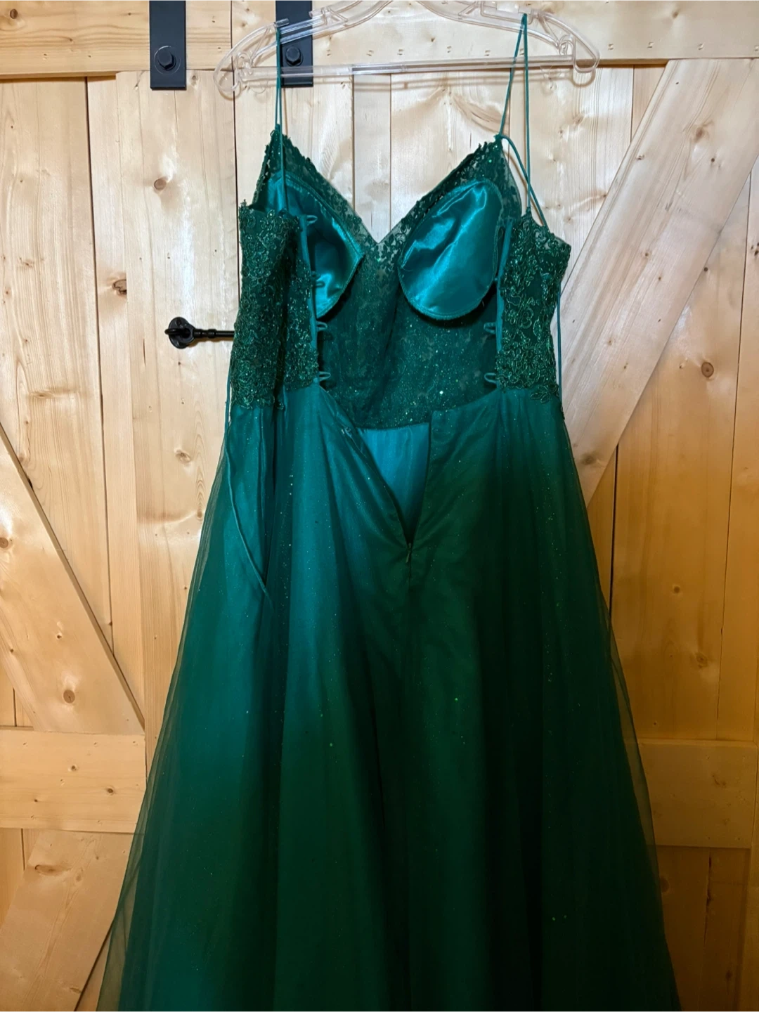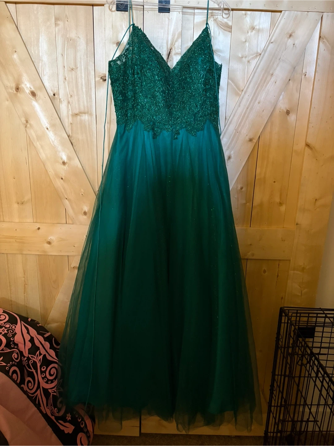 fits like a large slight extra large has pockets comes with a dress bag worn once for a graduation. bought new for $900. can provide photo of worn for reference. can play with price.