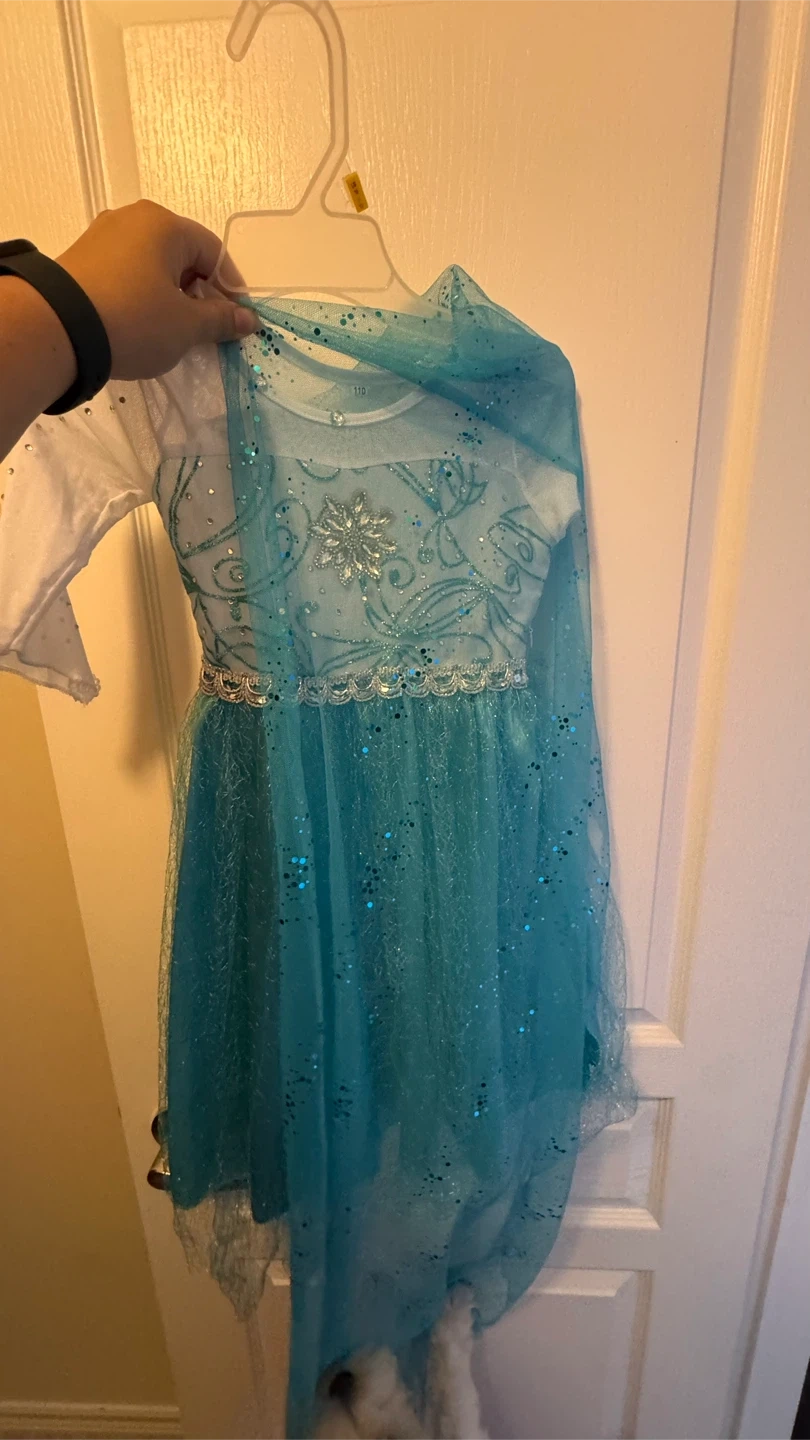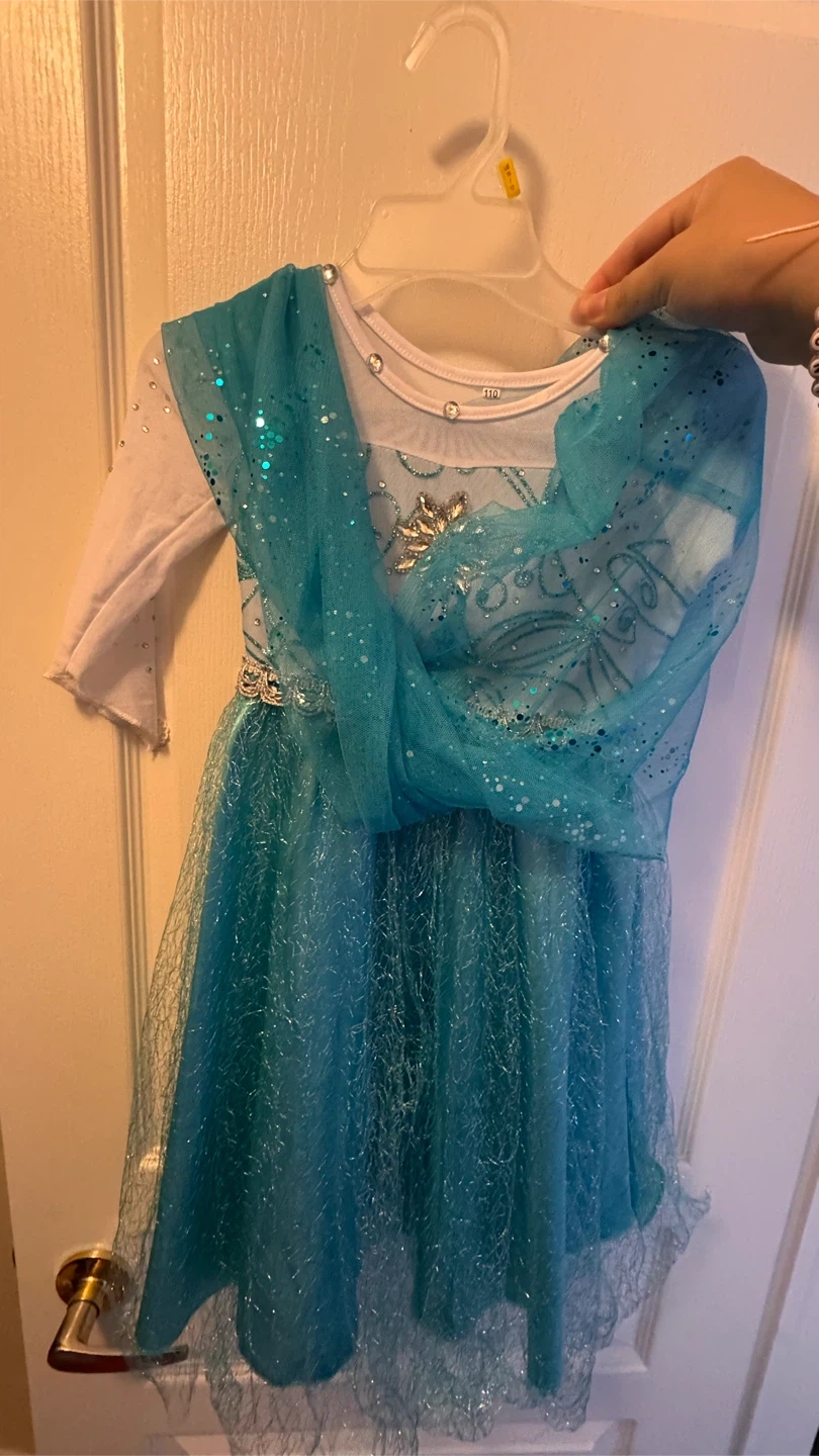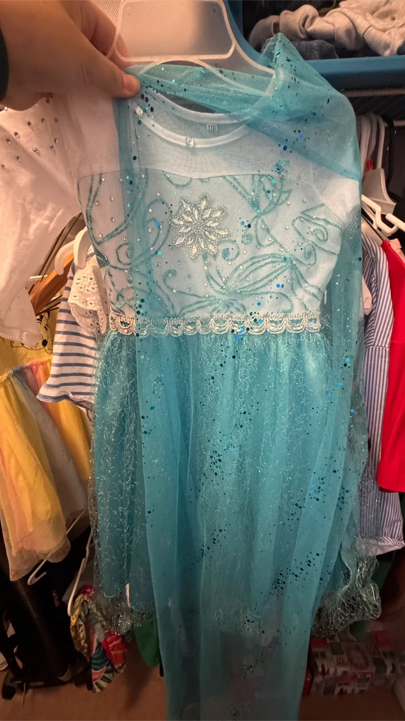 25A beautiful Elsa dress, perfect for any Frozen fan! This dress is a size 110 suitable for 2-4 years and features lovely details and sparkles. It's in great condition and ready for a new adventure! Pick up only 15 dollars