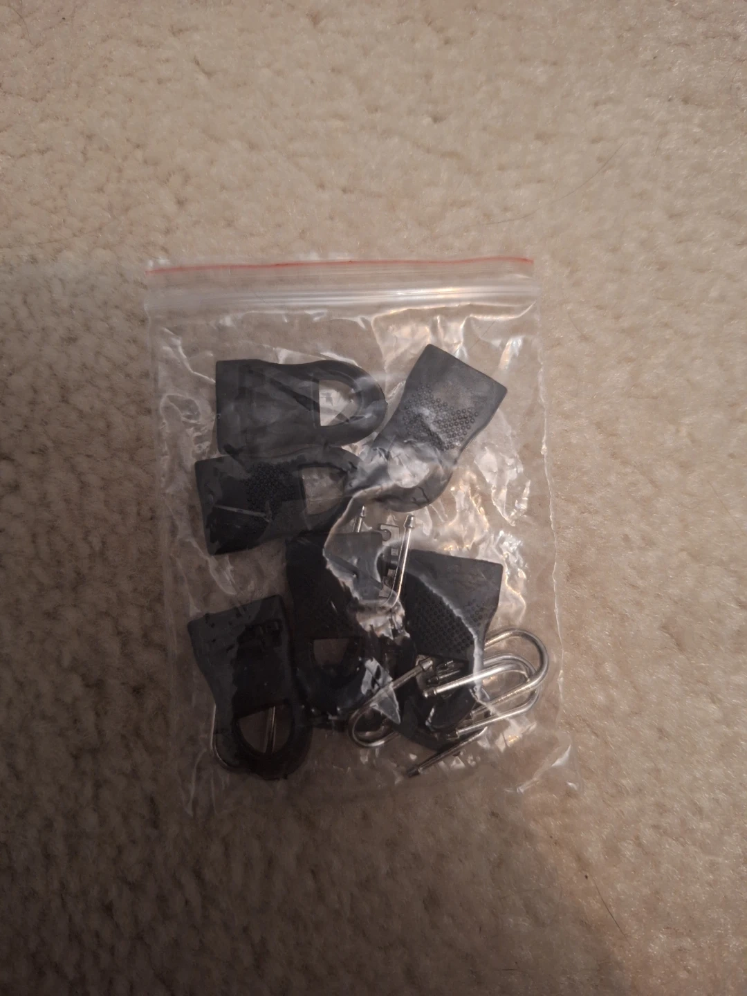 This is a set of universal zipper pull replacements. They're made of black plastic and metal. Easy to attach to most zippers! Just what you need for replacing broken zippers!