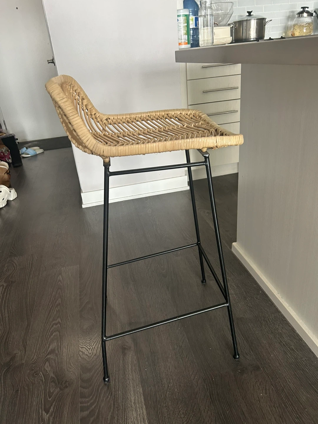 Moving sale! Woven Rattan Bar Stool with Black Metal Legs