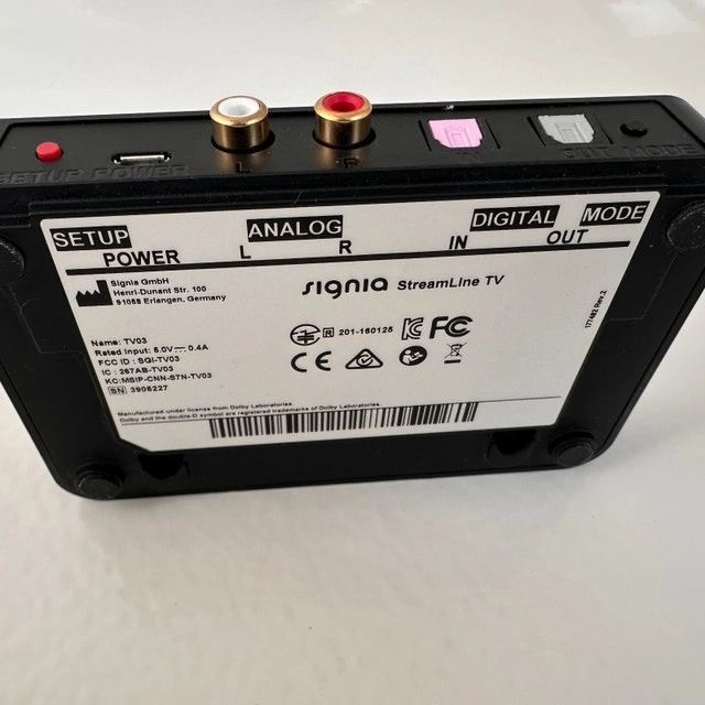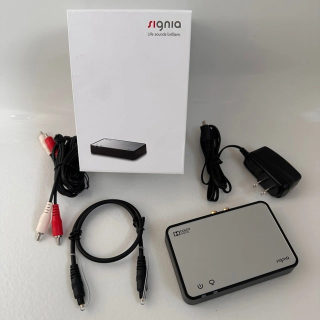 INCLUDES: ✅ Signia StreamLine TV unit ✅ Original Signia box ✅ Power adapter ✅ Optical (TOSLINK) cable ✅ RCA analog audio cable