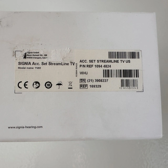 Selling a Signia StreamLine TV (Model TV03) — a wireless TV adapter that streams clear, low-latency TV audio directly to compatible Signia or Rexton hearing aids. Ideal for improving speech clarity while watching TV without increasing volume for others. This unit is gently used, clean, and works perfectly. Compatible with many Signia and Rexton Bluetooth hearing aids (Nx, X, AX generations and equivalents). Buyer should confirm compatibility with their specific hearing aids.