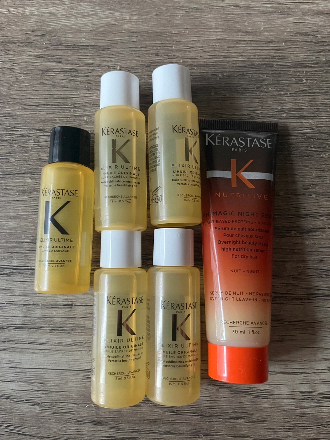 - Kerastase Elixir Ultime Sacree de Marula Hair Oil, 15mL: $15 each