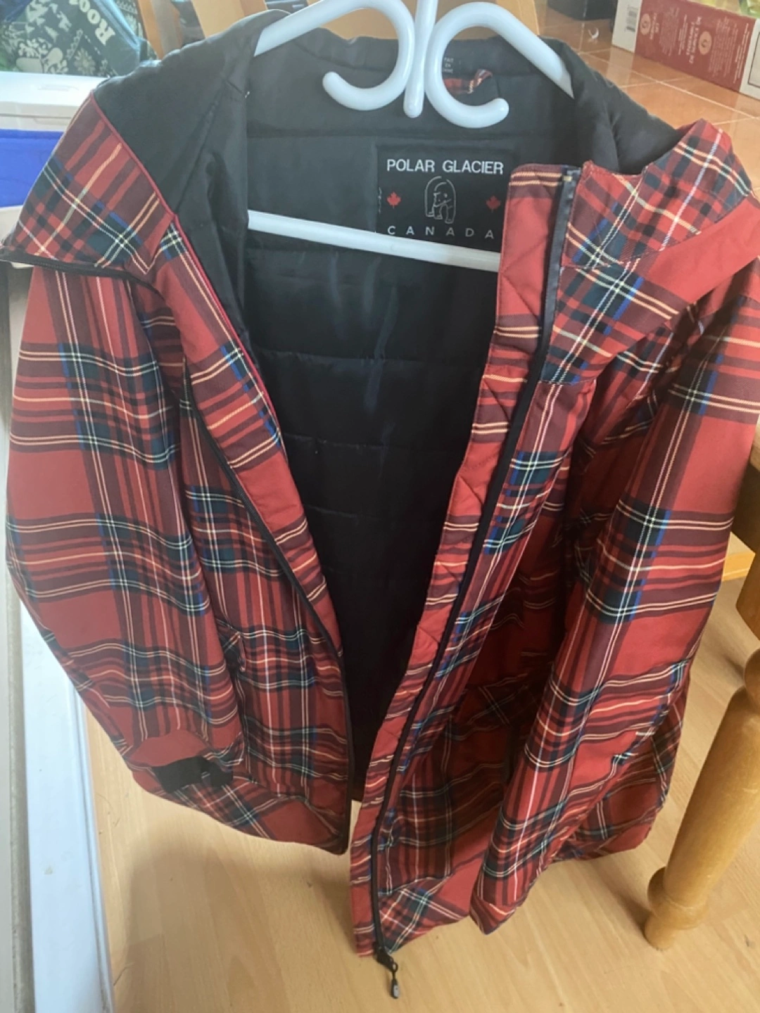 Cozy Polar Glacier Canada jacket in a vibrant plaid pattern! This jacket is a size 2X and features the iconic Canadian maple leaf design. Perfect for staying warm during those chilly Canadian days!