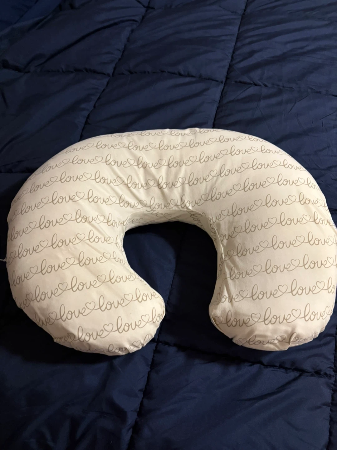 Selling a Boppy pillow with a cute 'love' pattern! It's in great condition and perfect for feeding or supporting your little one. It's soft and comfy!