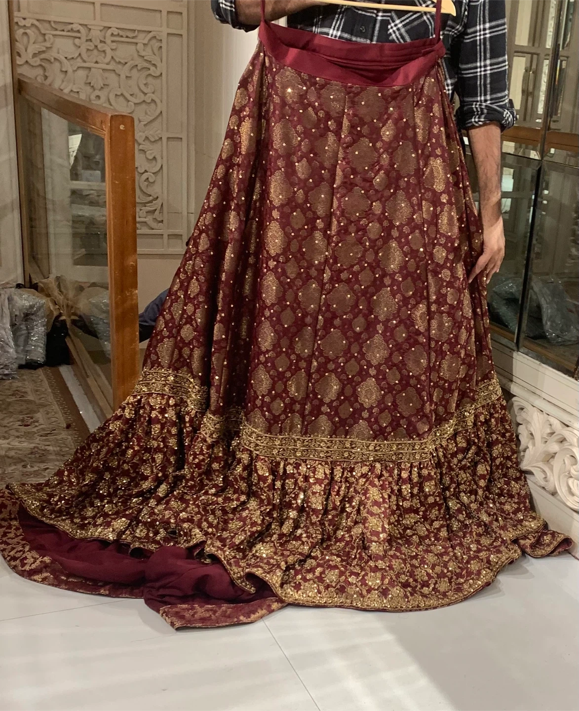 10Beautiful embroidered lehenga and kurta set, perfect for special occasions! The intricate detailing and rich colours make it a stunning outfit. It's in great condition and never worn