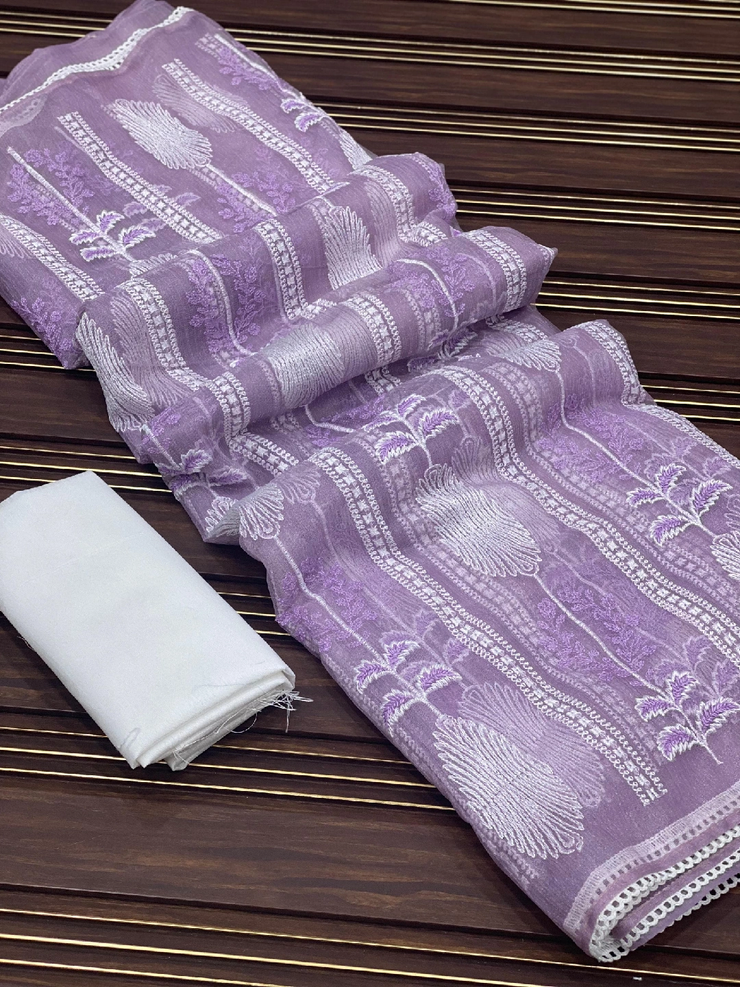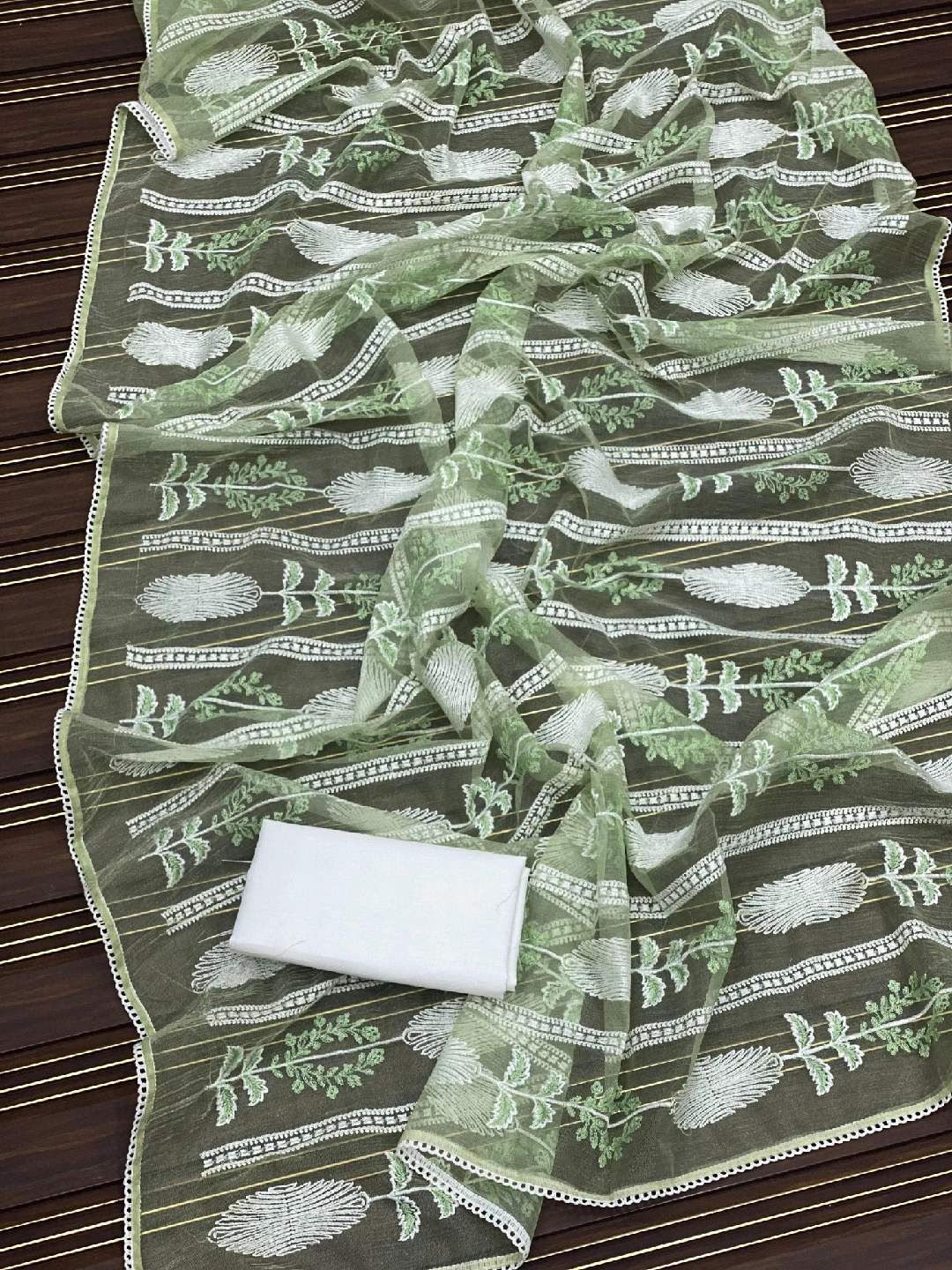 Beautiful embroidered organza fabric available in various colours! Perfect for adding a touch of elegance to your projects. Available in green, pink, blue, teal, and purple.