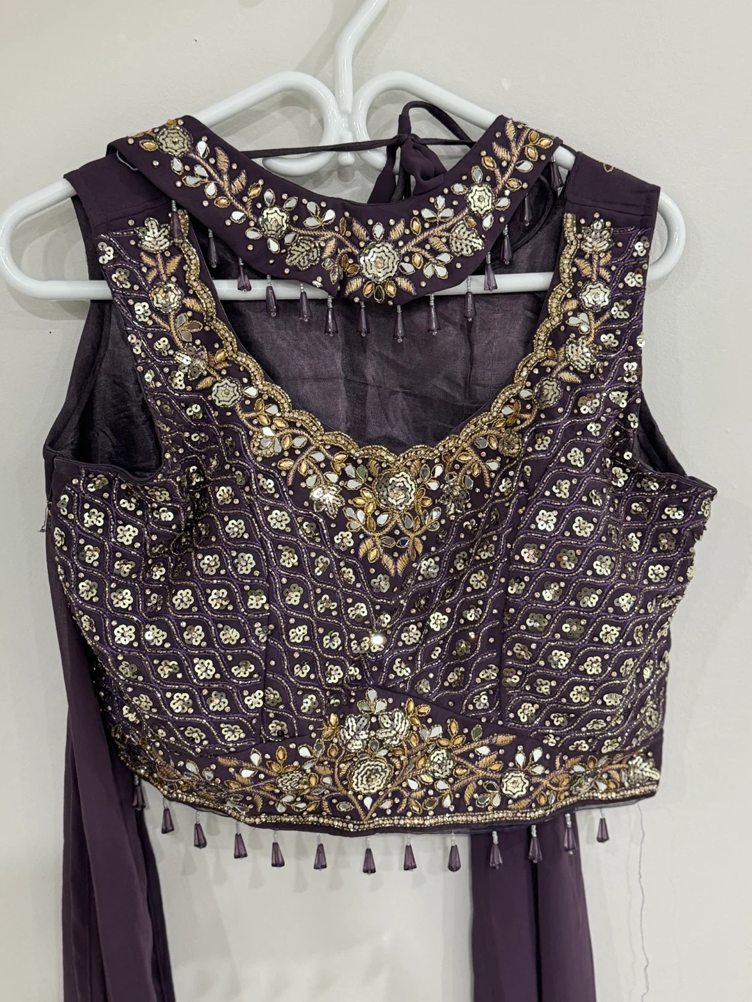 15Beautiful purple Indian outfit with shrarra and neckline duppata . Size -40 Karvachauth and Diwali salDM to order