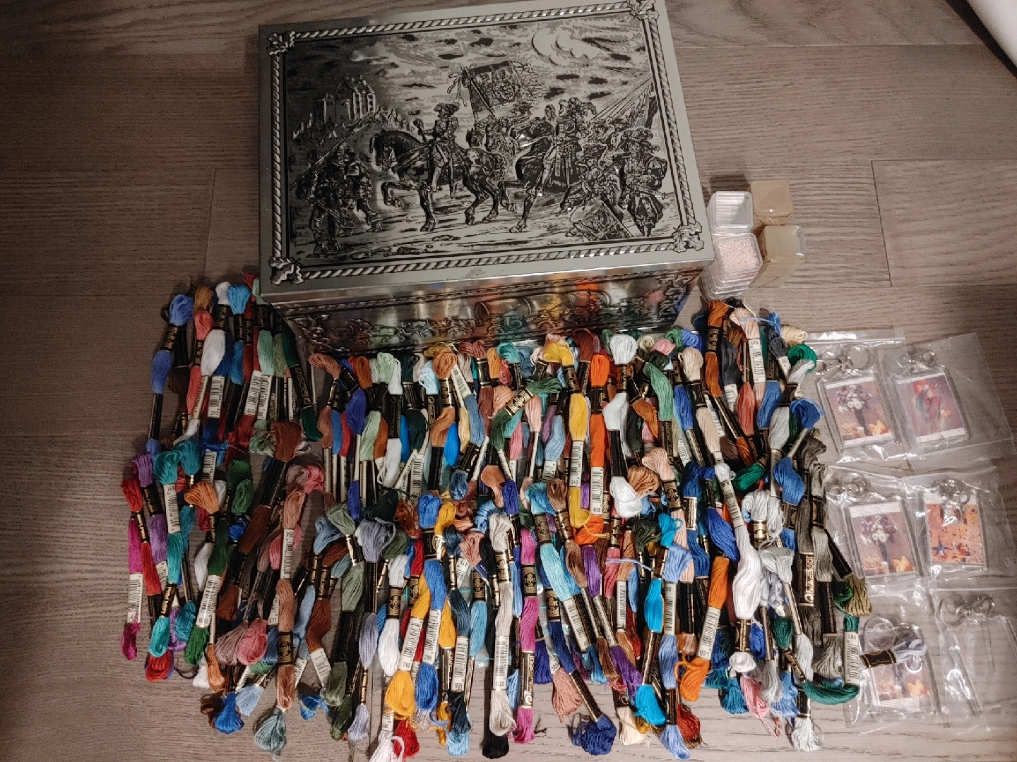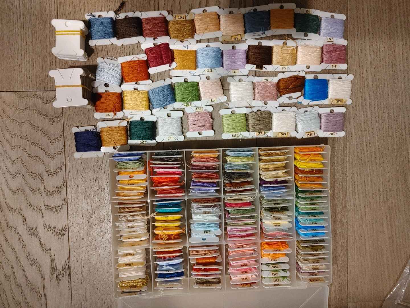 Selling a large lot of embroidery floss in various colours! It comes with a decorative storage box and some other small craft items. Perfect for all your needlework projects!