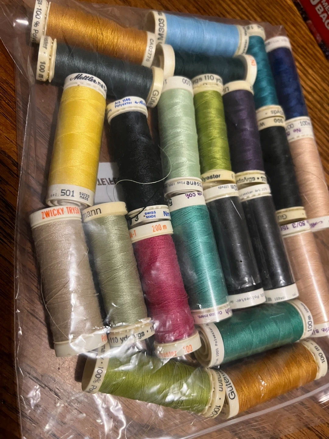 60Selling a collection of sewing threads in various colours! Perfect for all your sewing and crafting projects. There's a mix of brands and lengths, including Gutermann and Zwicky. There is two bags the first one is $30 and the second one is $10.