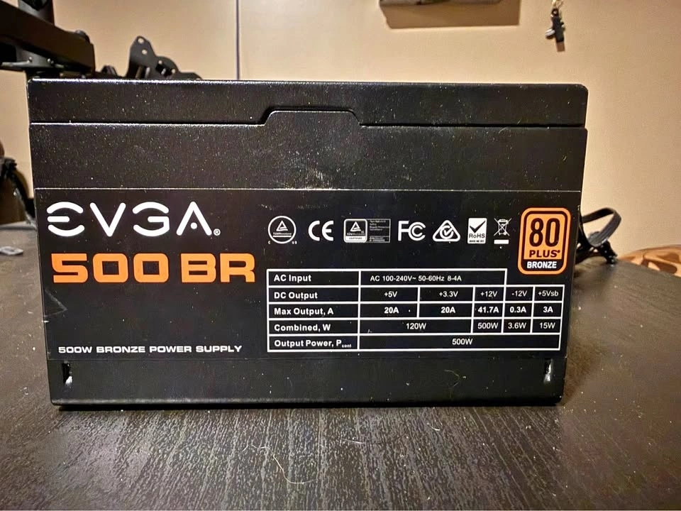 500 watt power supply perfect for a small build used for about a year, I was running a 5700x and a 3060 with this psu so it’s more than enough for a budget build 80 obo