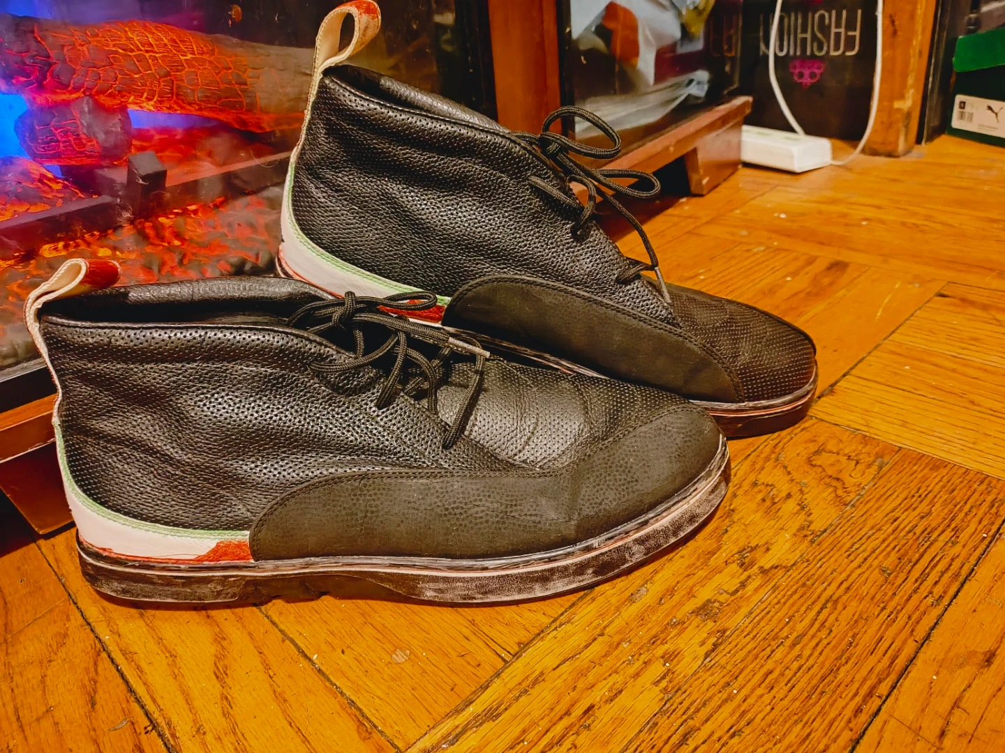 These are used and has red marker on back tag which is the picture with a finger pointing to it. Size 12 mens