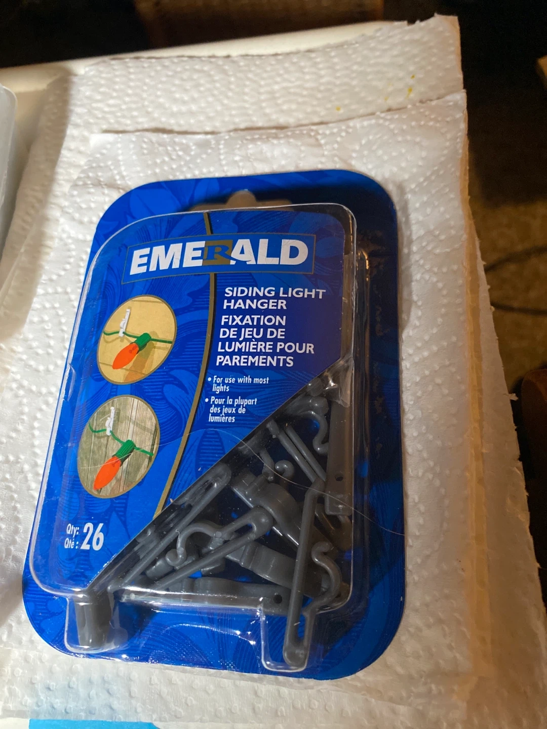 393I'm selling a pack of Emerald siding light hangers. The package contains 26 hangers, perfect for hanging your lights for any occasion! They're designed for use with most lights and are new in the original packaging- never opened Moving Sale Pick up only
