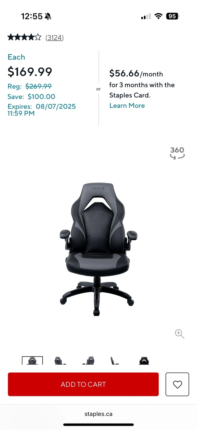 Selling an Emerge gaming chair in black and purple! It's in great condition and ready for a new home. Originally bought for $169.99 at Staples, this chair is super comfy for gaming or working from home https://www.staples.ca/products/2829477-en-emerge-vortex-bonded-leather-gaming-chair-black-and-grey?CID=PS:GS:CA::pla-2400552103604::169753320476:pla:21861314381&CampaignID=21861314381&gad_source=1&gad_campaignid=21861314381&gbraid=0AAAAAD_dfLoLWzOkLT50k8HnAKBkDJ1wB&gclid=CjwKCAjw7rbEBhB5EiwA1V49nQKkpAqWRDcYg25UuBCdoNcphCRF98GMyeUUShifUaMqUoXY1OCY4RoCIZUQAvD_BwE