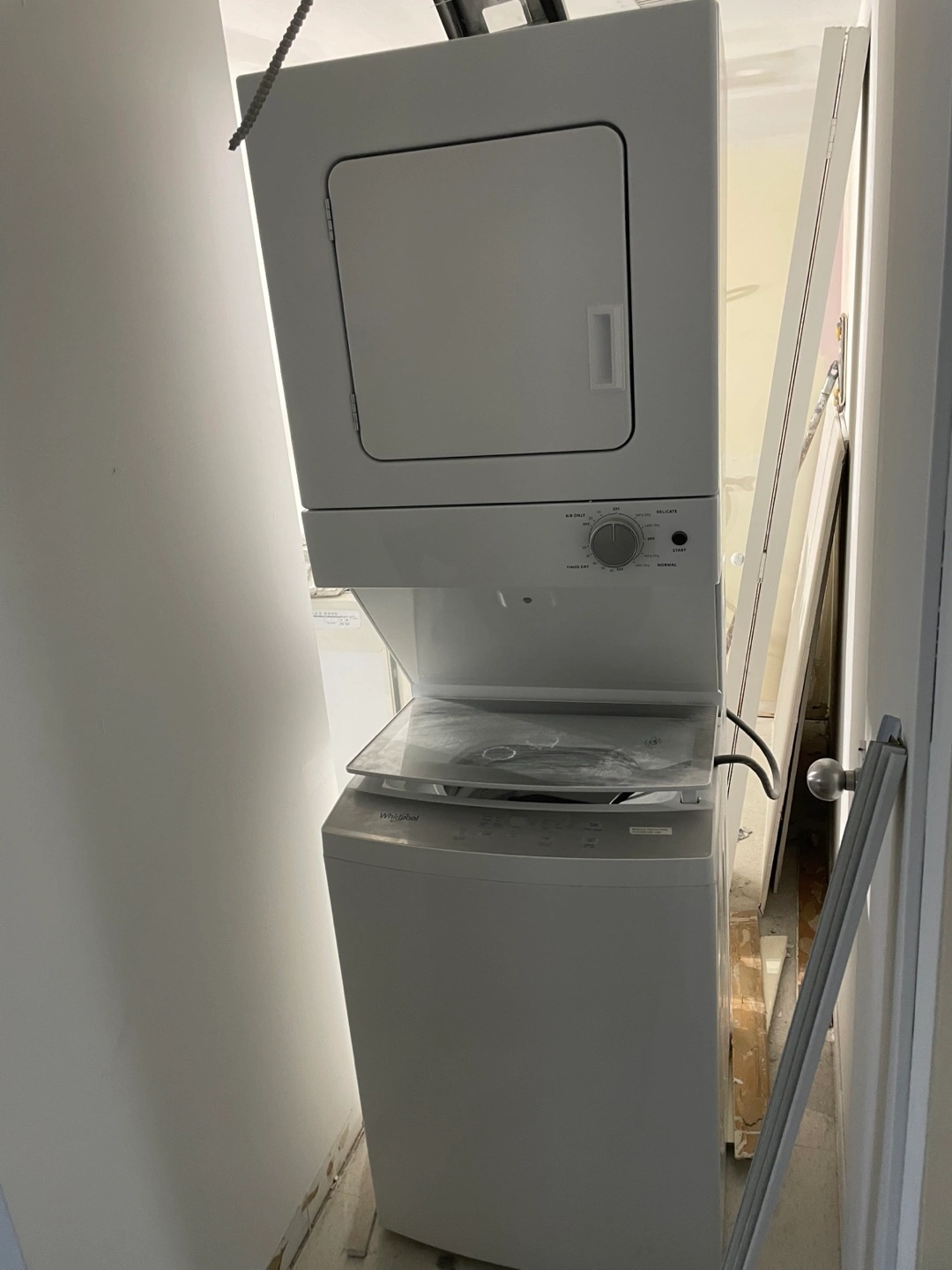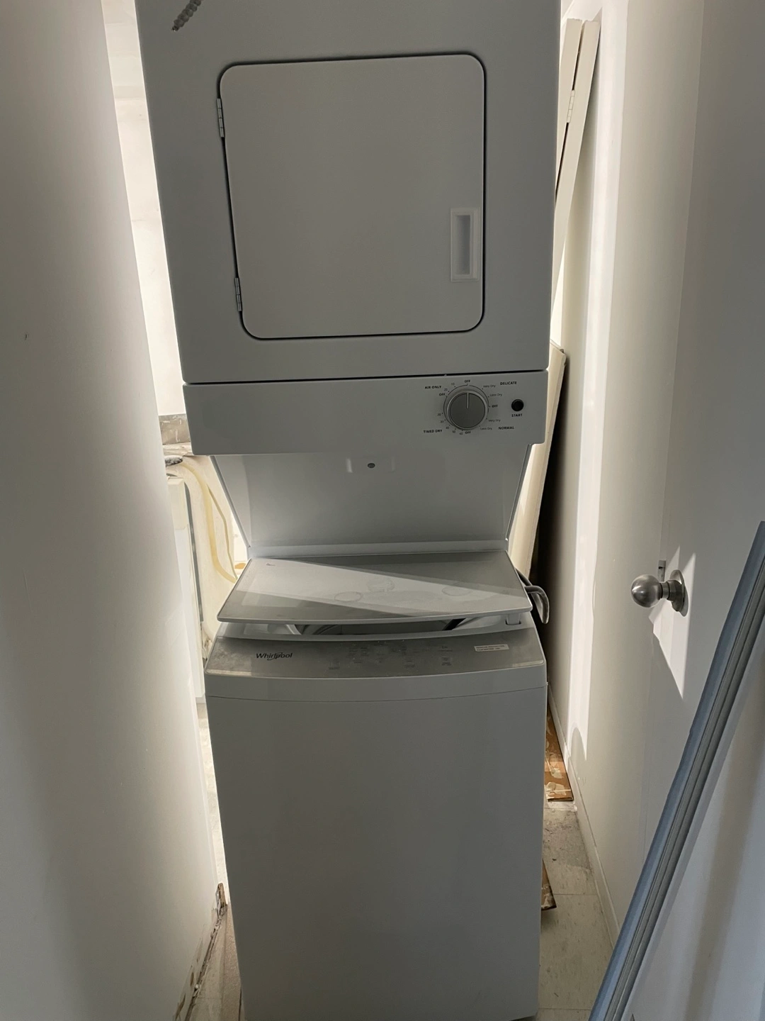 Selling a Whirlpool stacked washer and dryer. It's in good working condition and ready for a new home. The washer is approximately 24 inches wide.