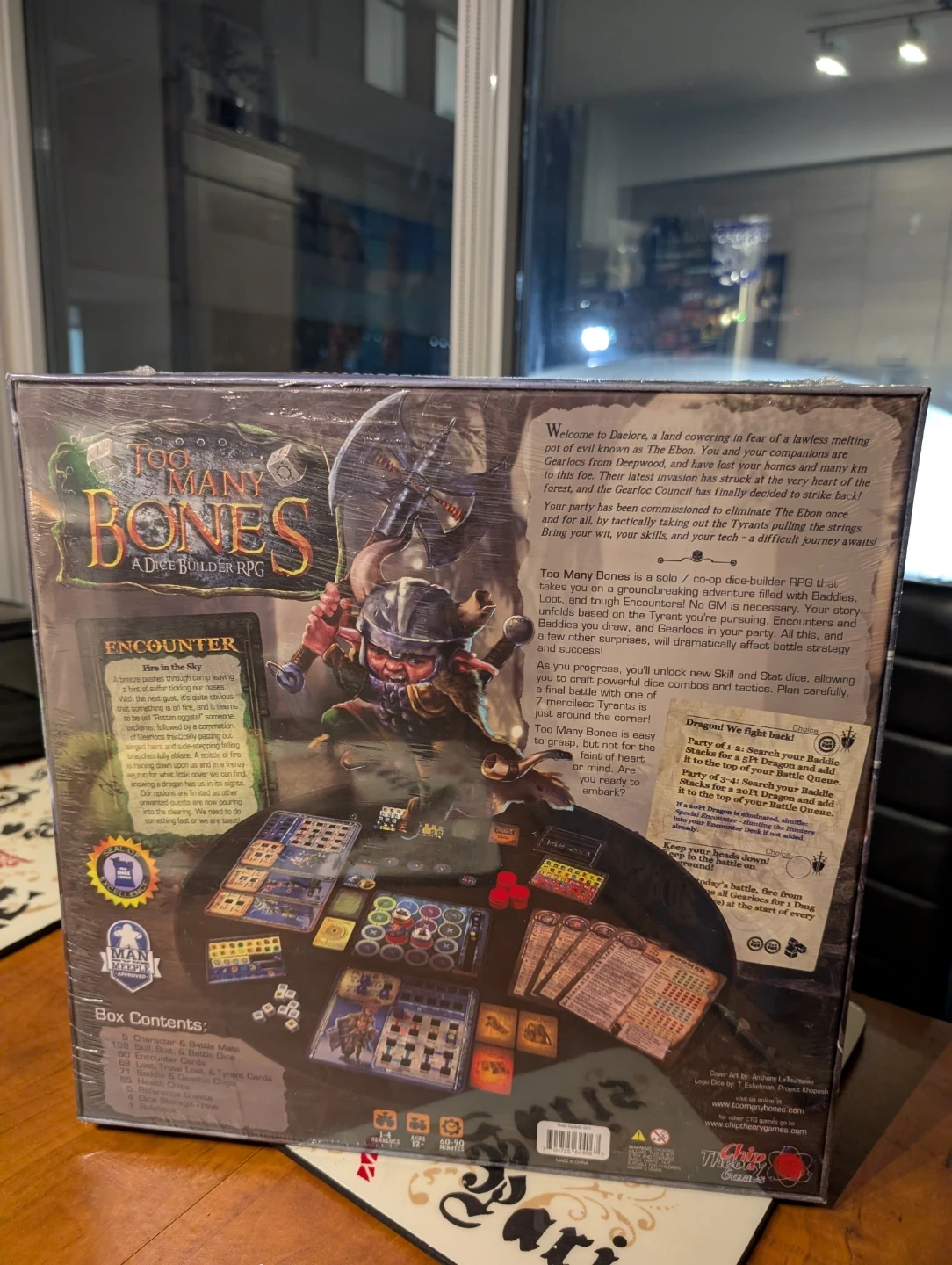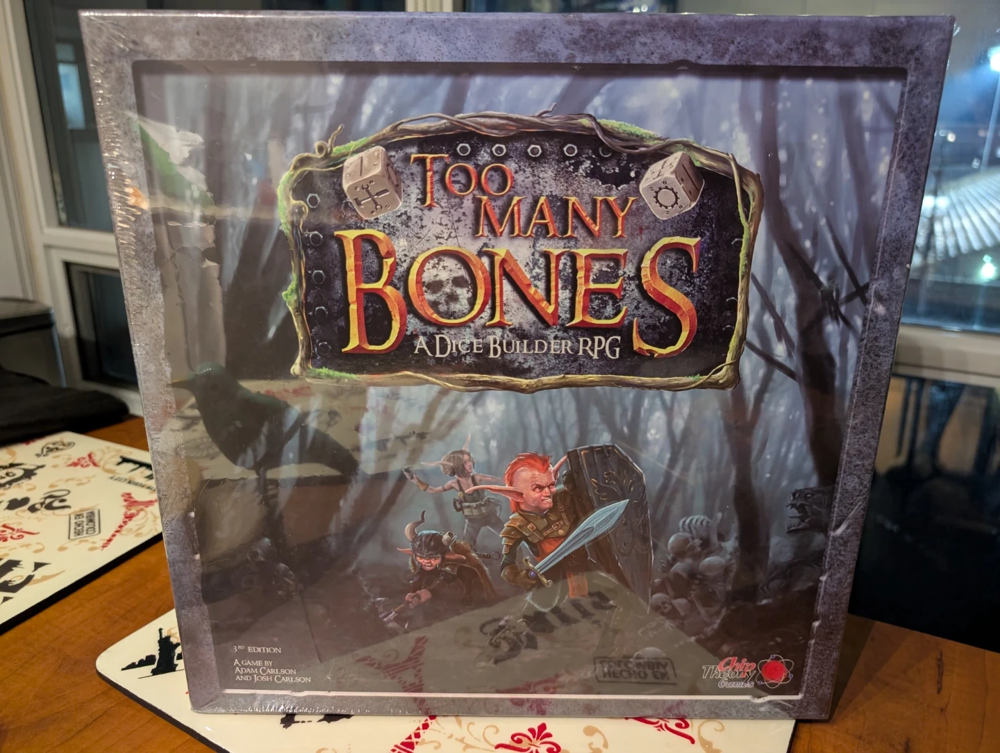 Buy & SellToo Many Bones: A Dice Builder RPG - New!Too Many Bones: A Dice Builder RPG - New!$180Selling a brand new, still sealed copy of Too Many Bones: A Dice Builder RPG! 3rd editionConditionNewWHERE TO MEETCheck LocationView MapSELLERverifiedNickLiberty Village761 review1 chats·1 favorites·26 viewsSEND CHAT TO SELLERHi Nick! I’m interested in your listing.Hi Nick! I’m interested in your listing.Get the Karrot app to chatSign In to chat