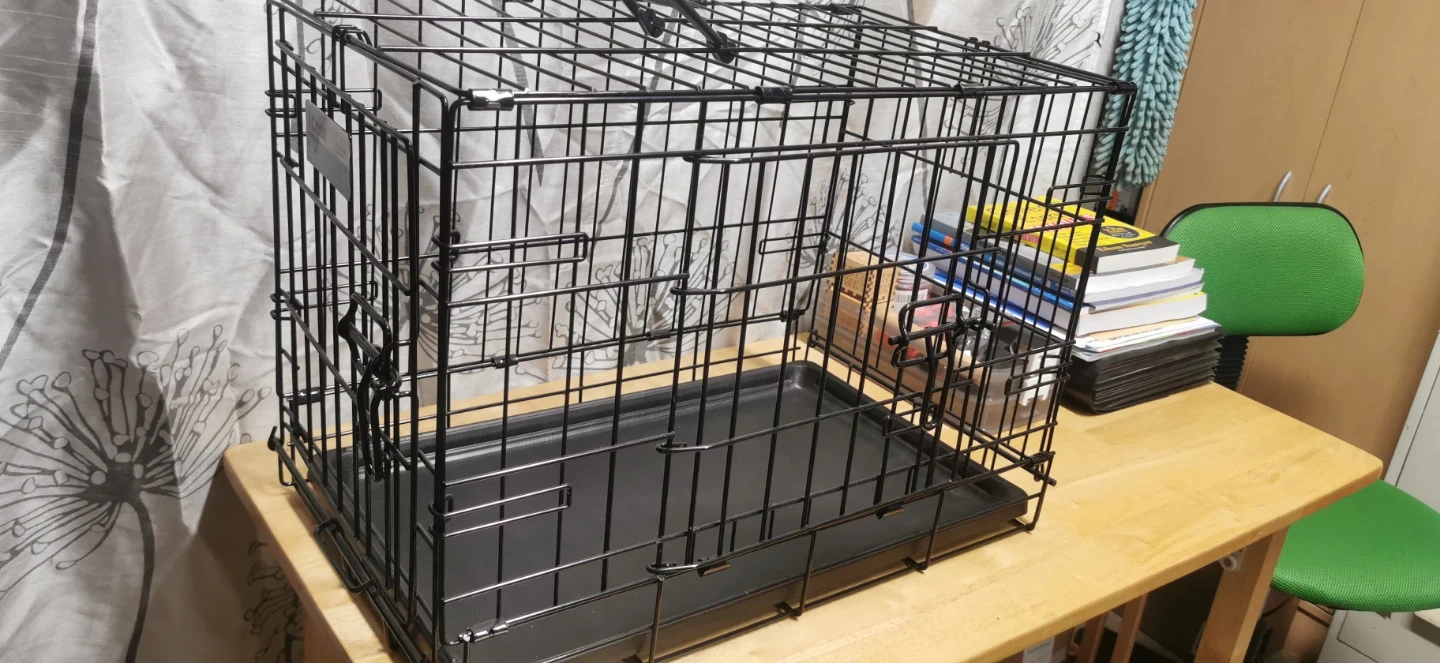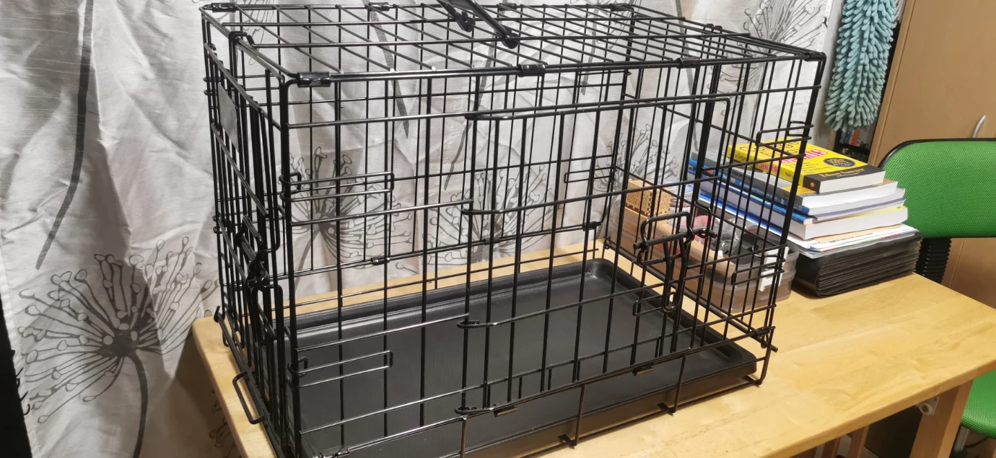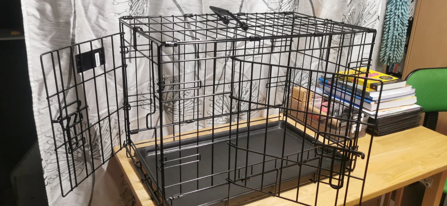 This black wire dog crate by MidWest Homes For Pets is model 1522DD. It measures 22.51" L x 14" W x 16" H. Includes a removable black pan for easy cleaning. Two doors for easy access!