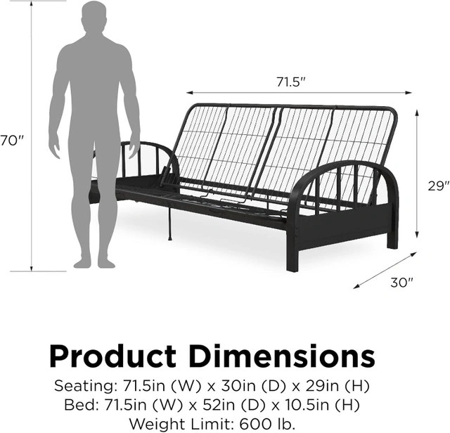 DHP Aiden Metal Futon Frame, Black with free futon and a cover