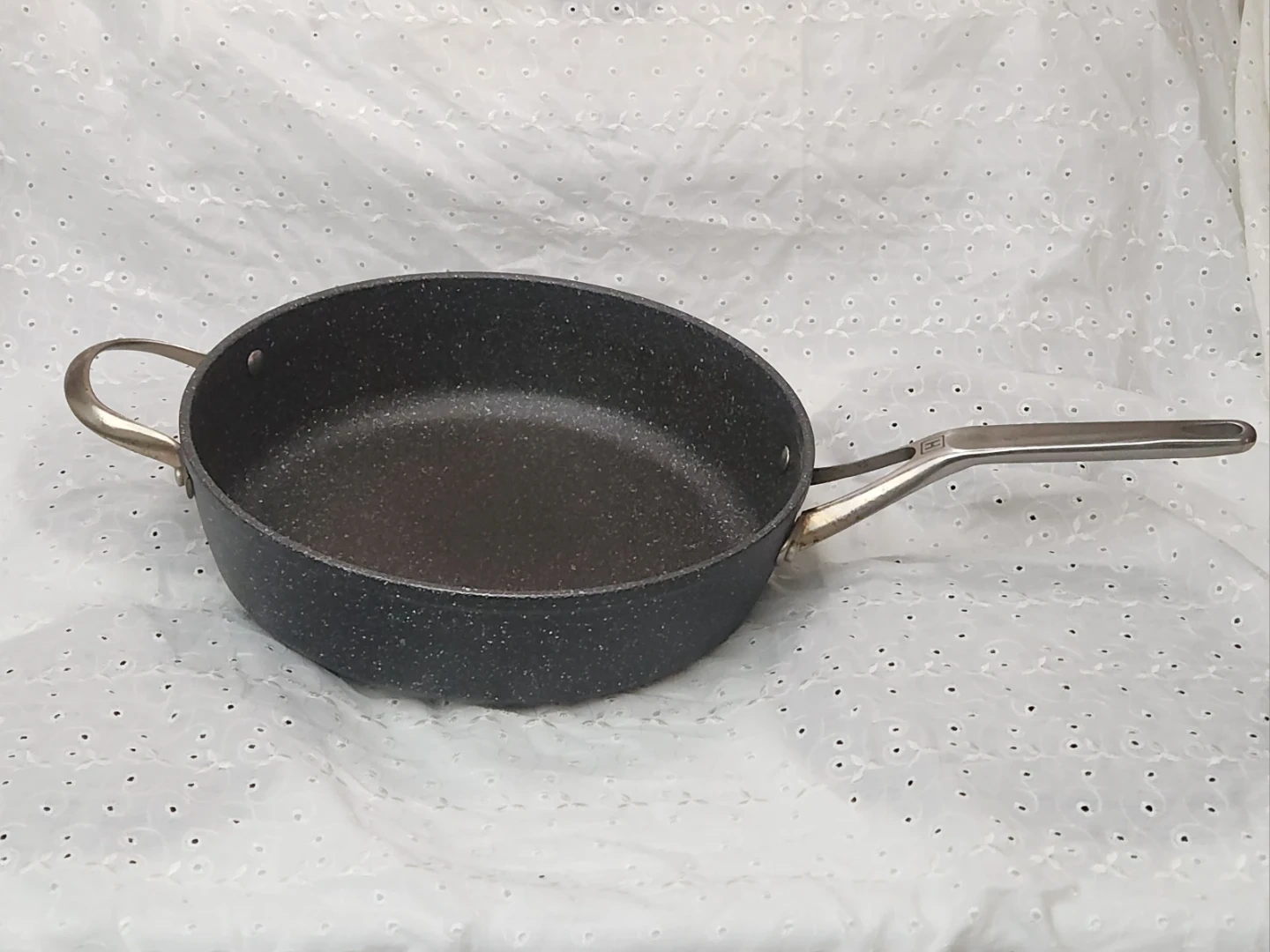 This is a Farberware nonstick frying pan. It has a speckled grey finish and a sturdy handle. It's perfect for everyday cooking needs!