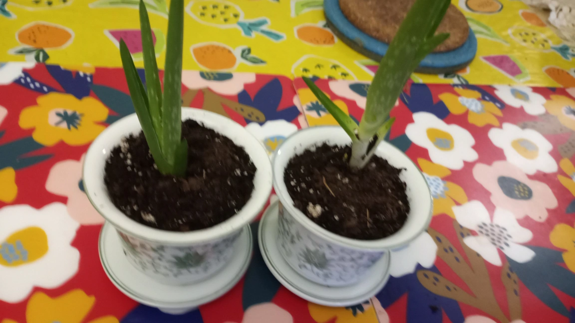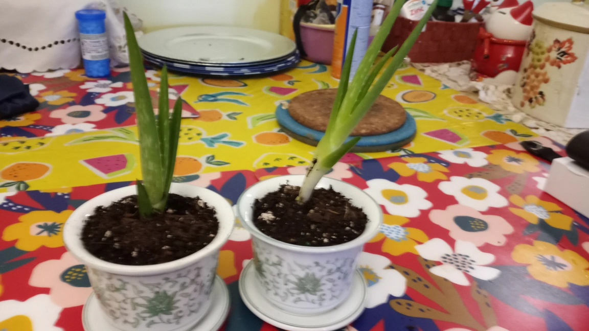 Two Aloe Vera Plants in White Pots