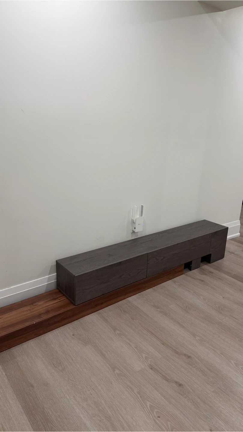 Selling a dark brown TV console. It has a sleek design and offers great storage with its built-in drawers. Perfect for any living room setup!