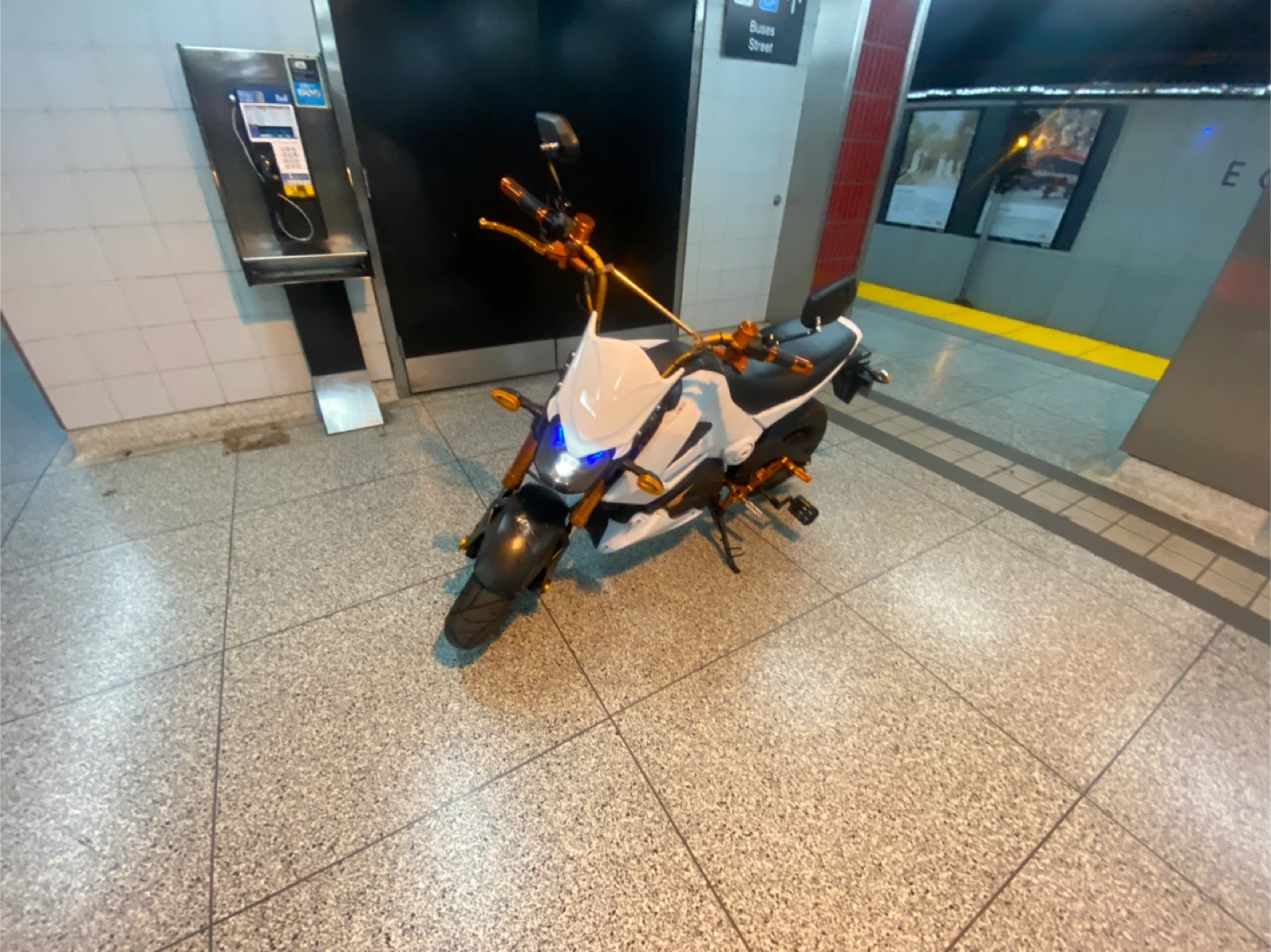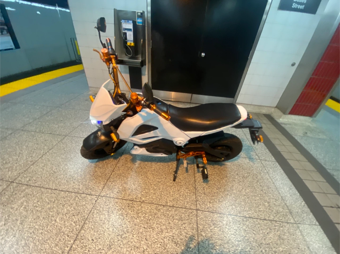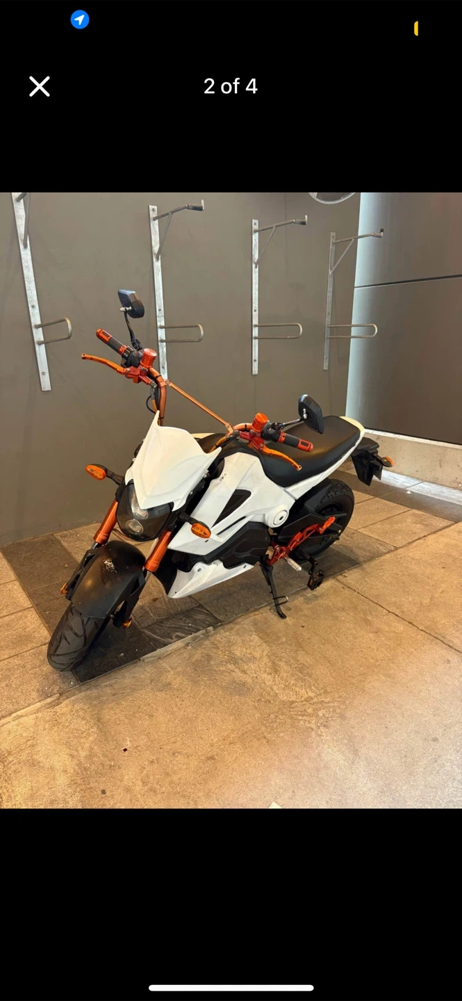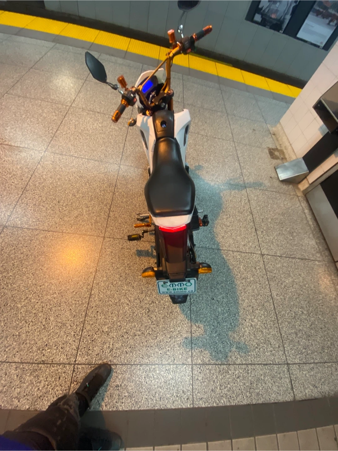 Selling a white emmo knight turbo . It has orange accents. Great for getting around town! Runs and drives 72v setup