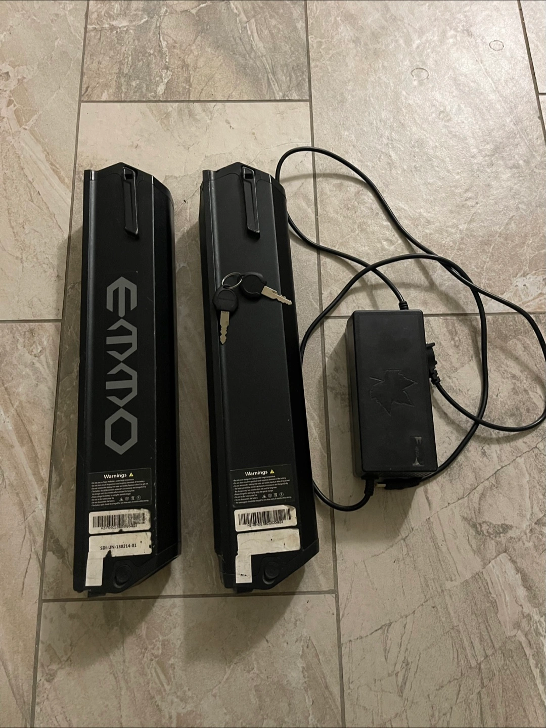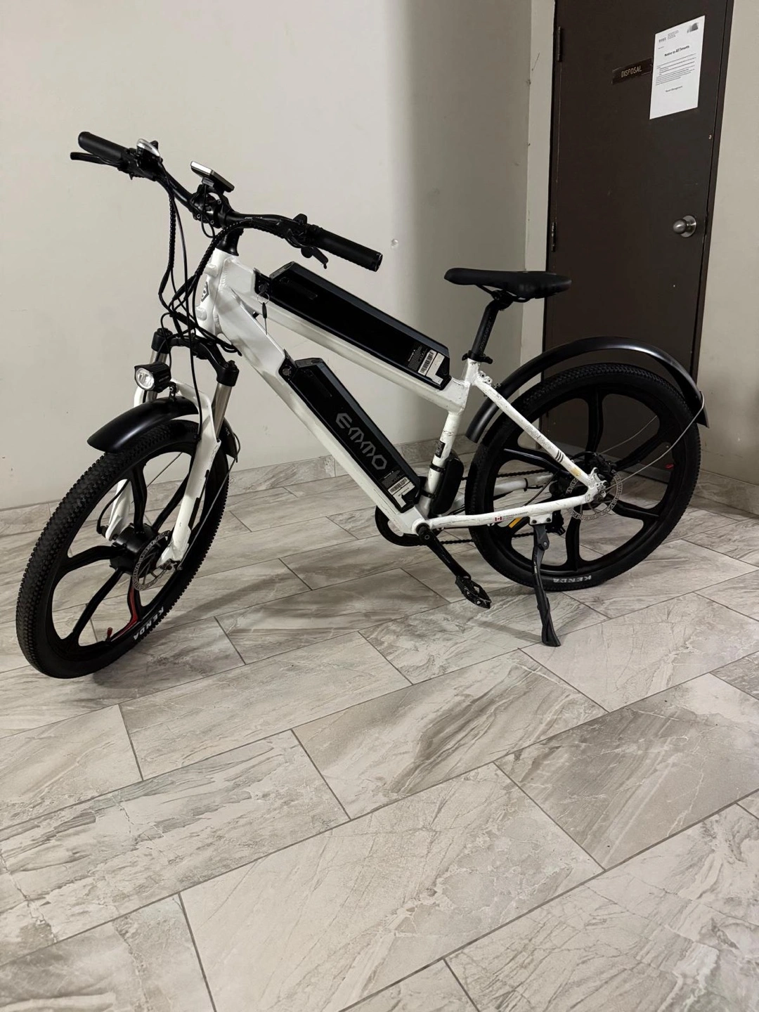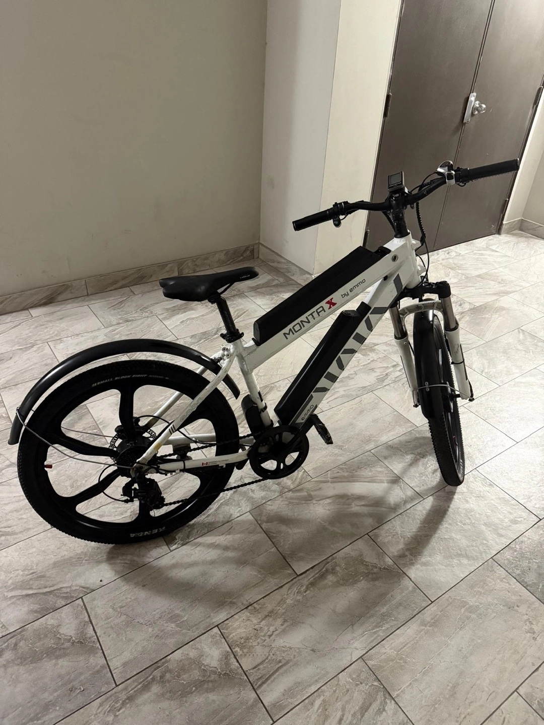Selling an EMMO Monta X electric bike. It's in great condition and ready for some fun rides around town! The bike has a sleek design and is perfect for commuting or leisurely rides. It comes with two batteries for extended range This bike is best for uber or DoorDash because it’s has dual batteries Bike come with keys and charger Text for more info!