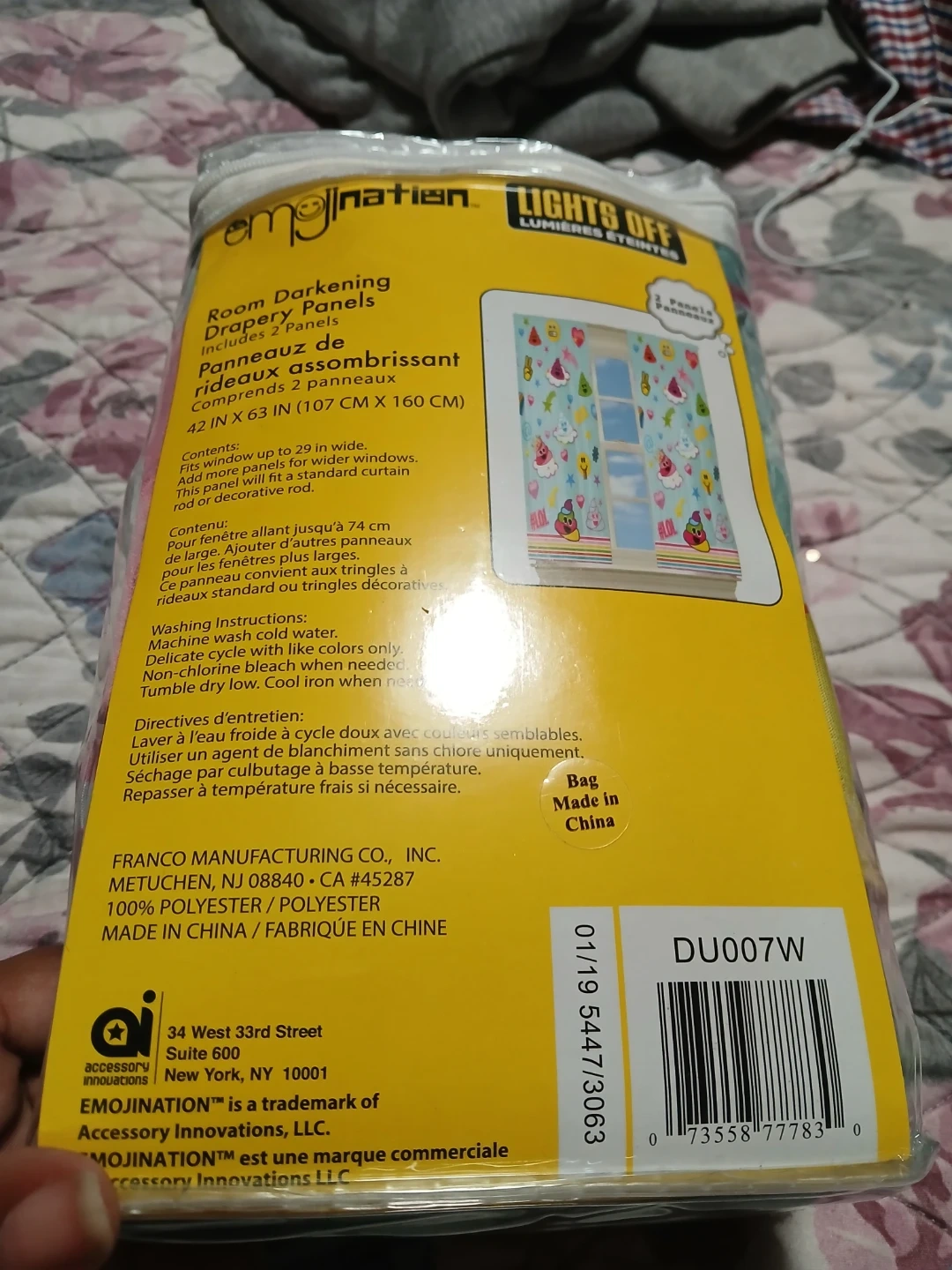 540Selling a set of Emojination room darkening drapery panels. Each panel measures 42 inches by 63 inches. Includes 2 panels. These fit windows up to 29 inches wide. Add more panels for wider windows. This panel will fit a standard curtain rod or decorative rod. Made of 100% polyester. Price is firm plz. Pick up midland and Danforth or 401 bay street or stc mall