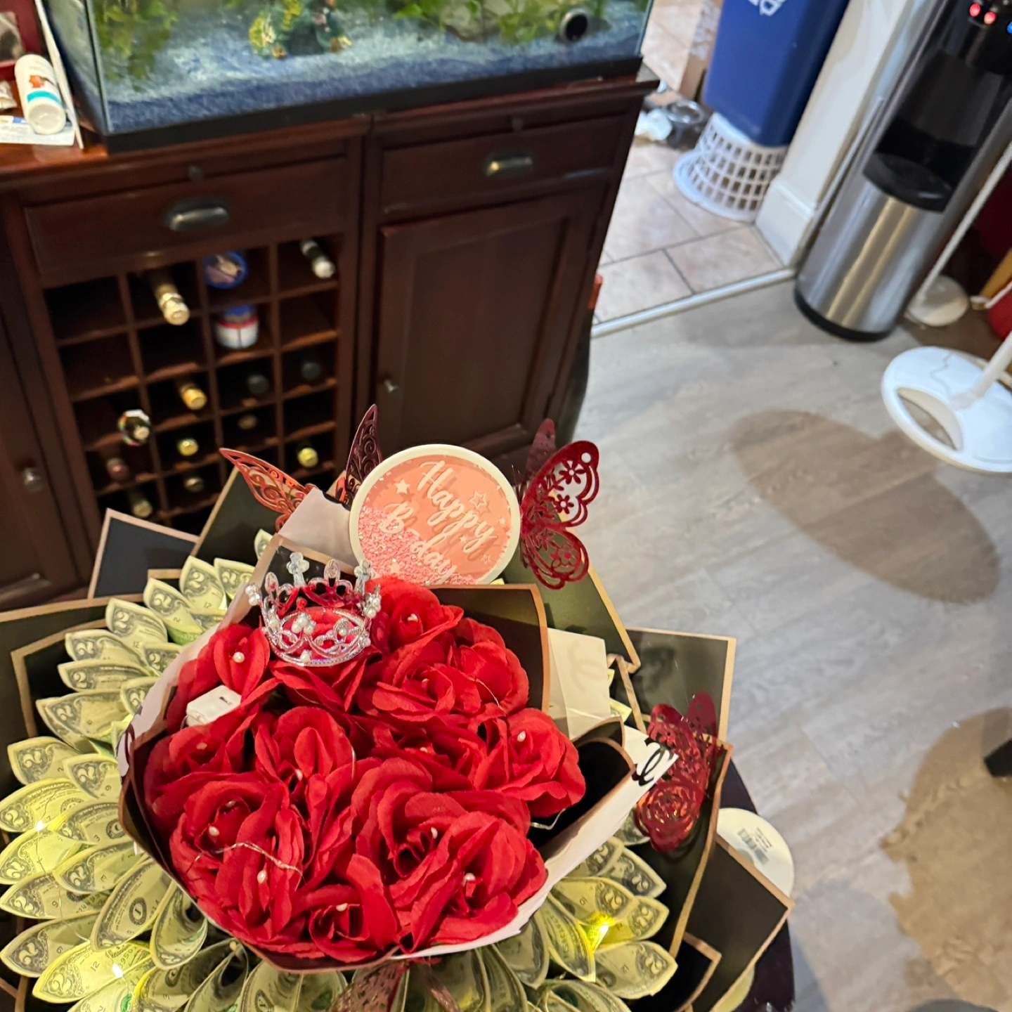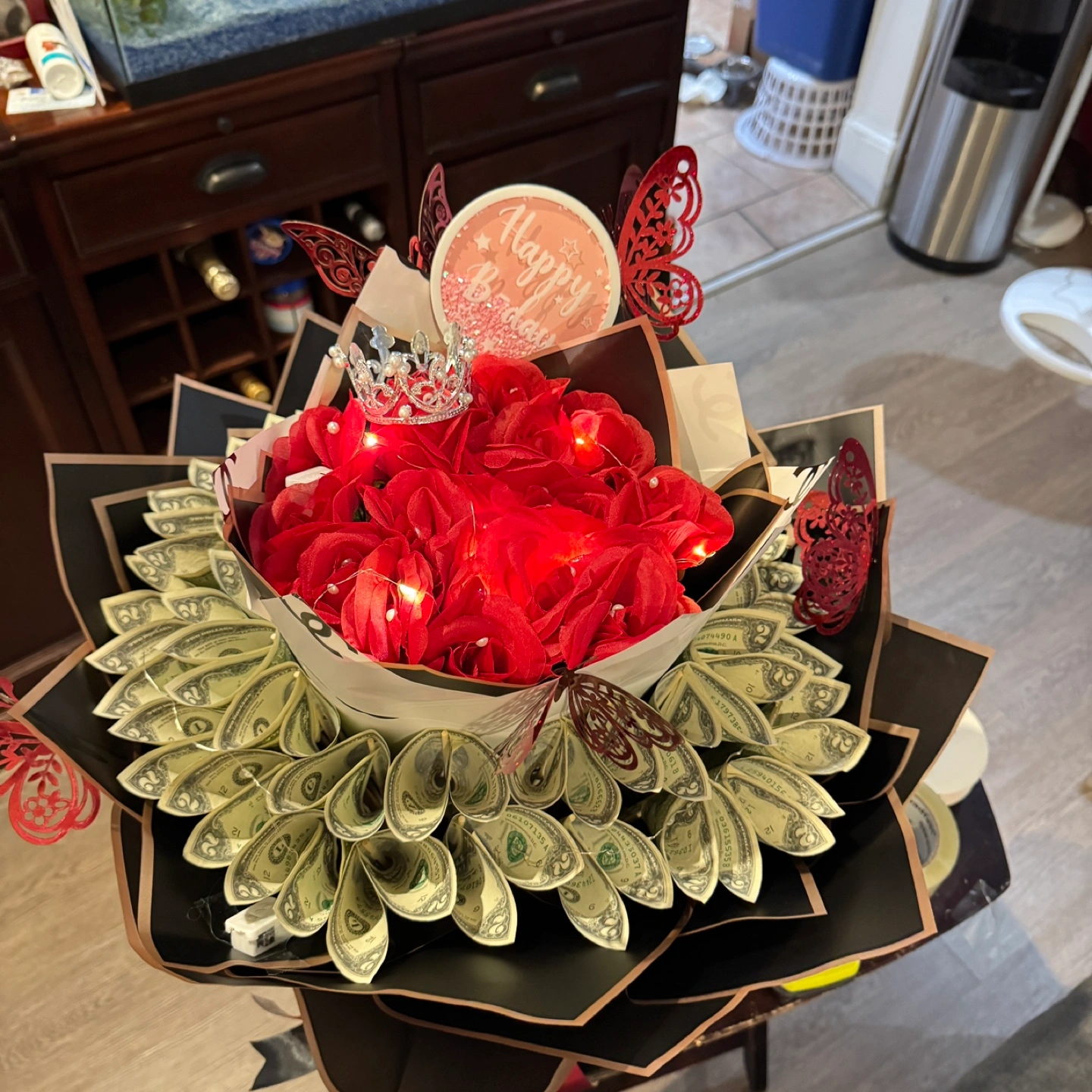 Money Bouquet with Red Roses